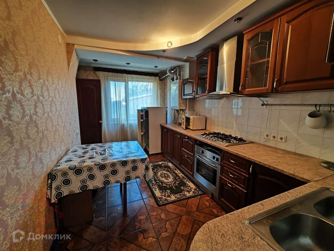 Квартира уютная, тёплая, очень чистая. Пластиковые окна, застекленный балкон, кафель в кухне, ванной, на балконе и в прихожей, ламинат. На кухне теплые полы. Остаются кухонный гарнитур со встроенной техникой, вся мебель, кондиционер, холодильник и стиральная машина обсуждаются.