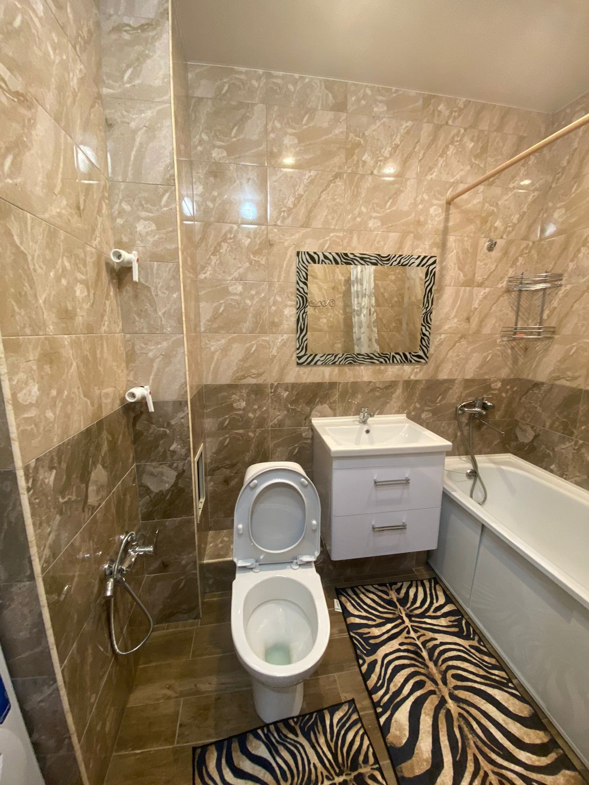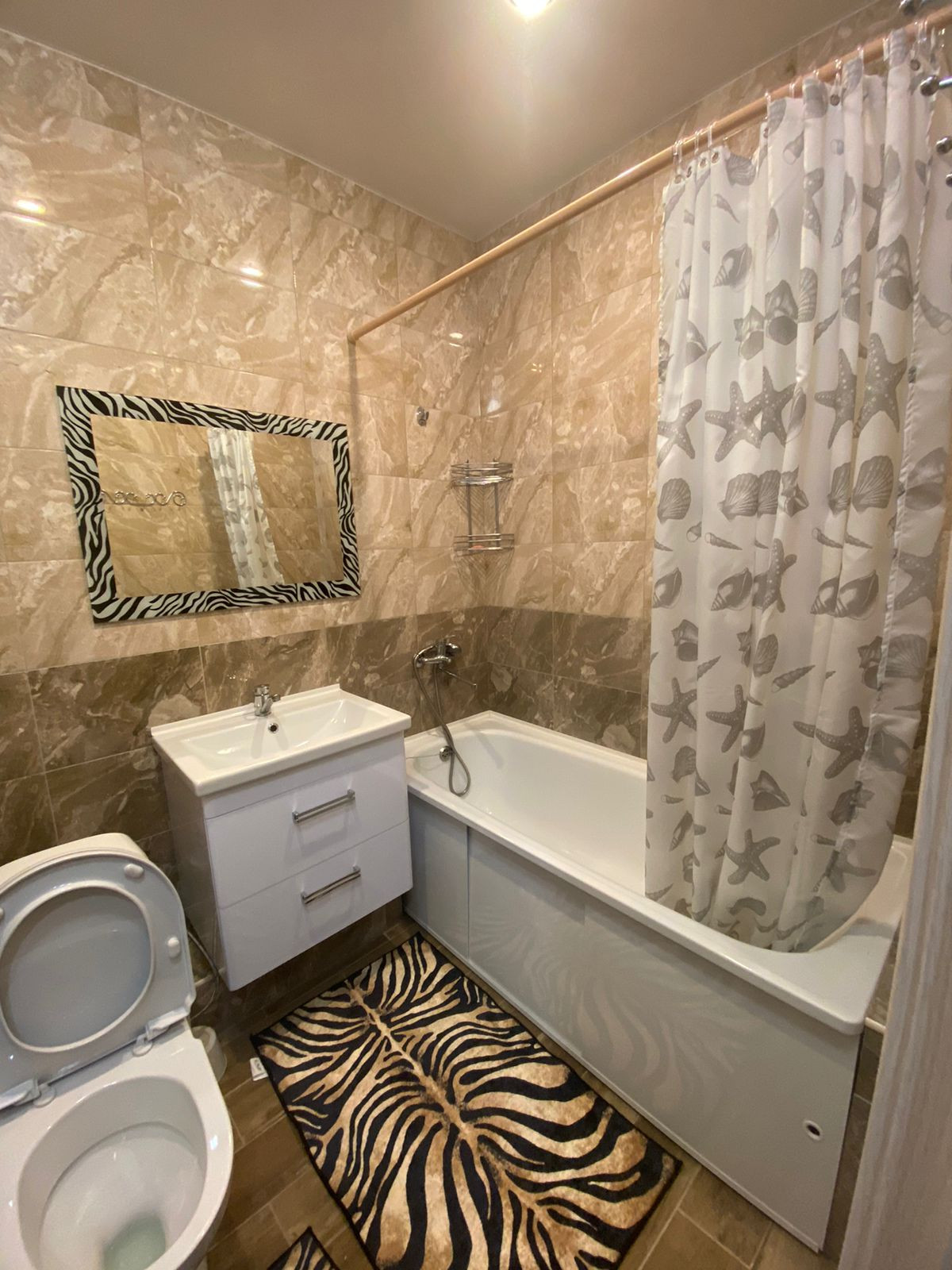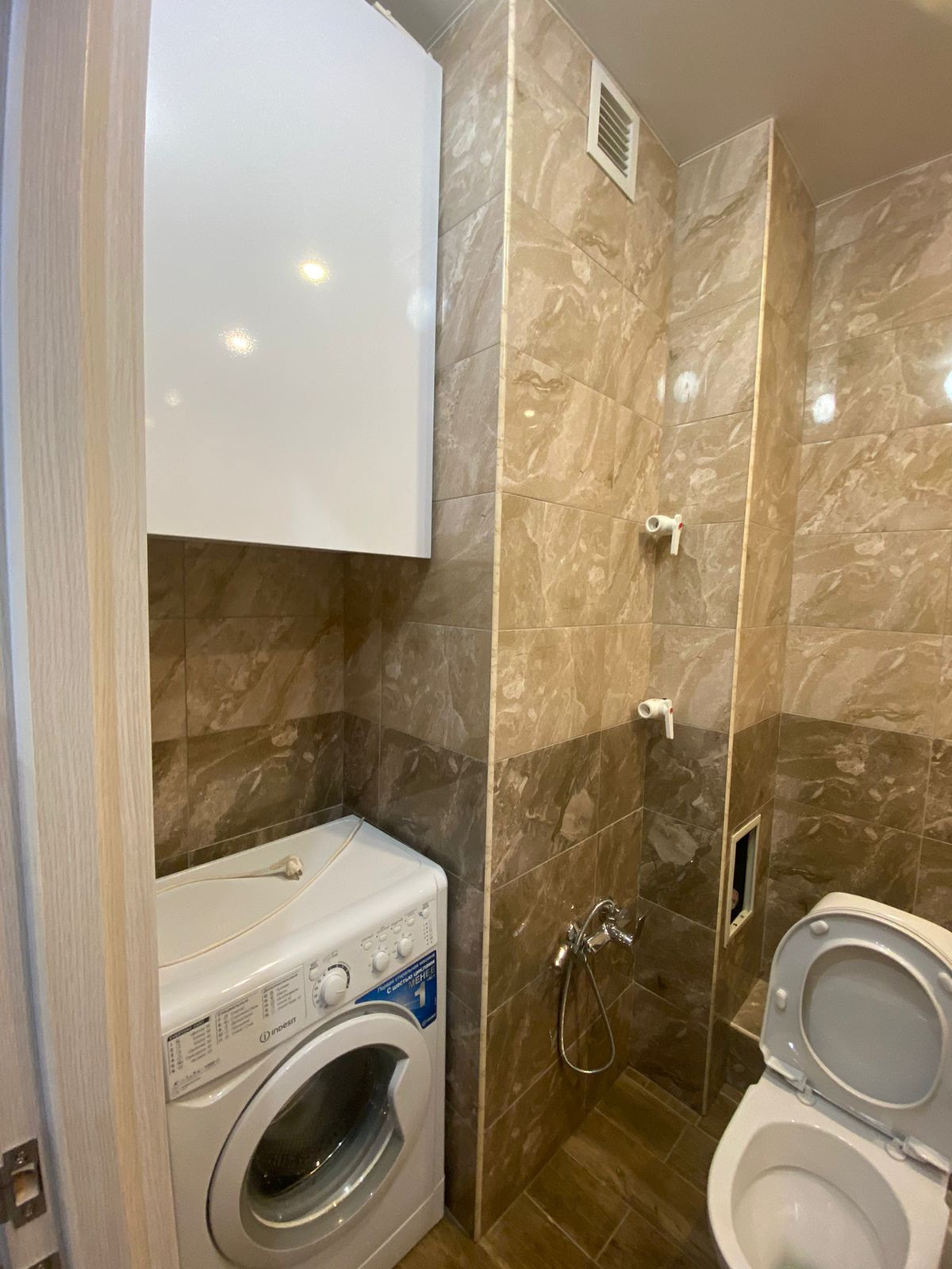 Санузел совмещенный, есть стиральная машина.(установлен водонагреватель , в случае отключения горячего водоснабжения);