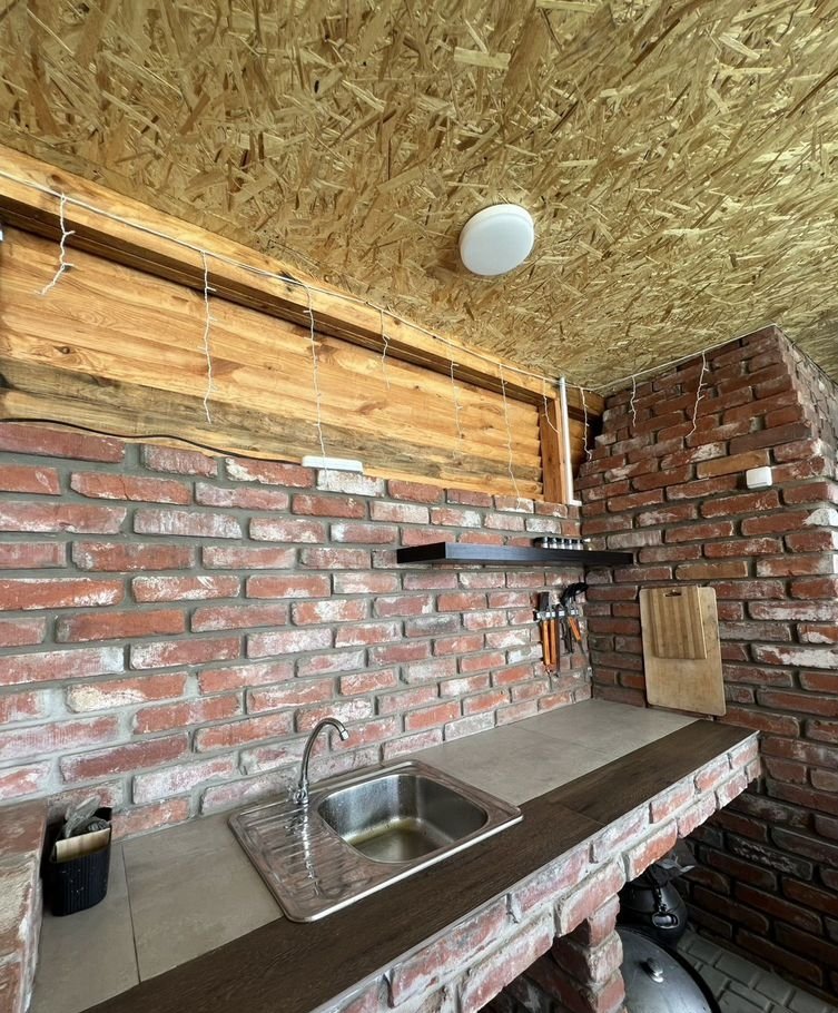 -Терраса с мангалом и русской печью.