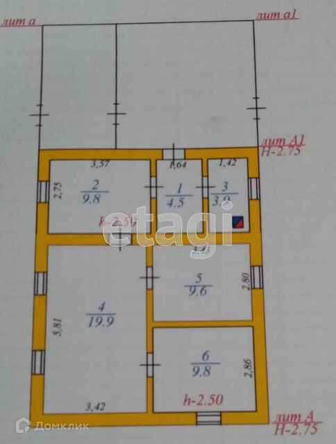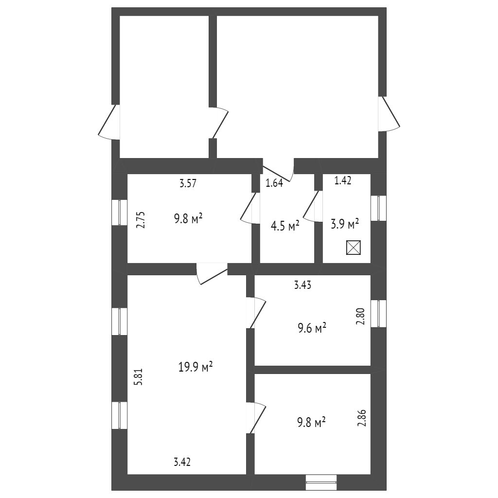 Общая площадь 57.5 м2