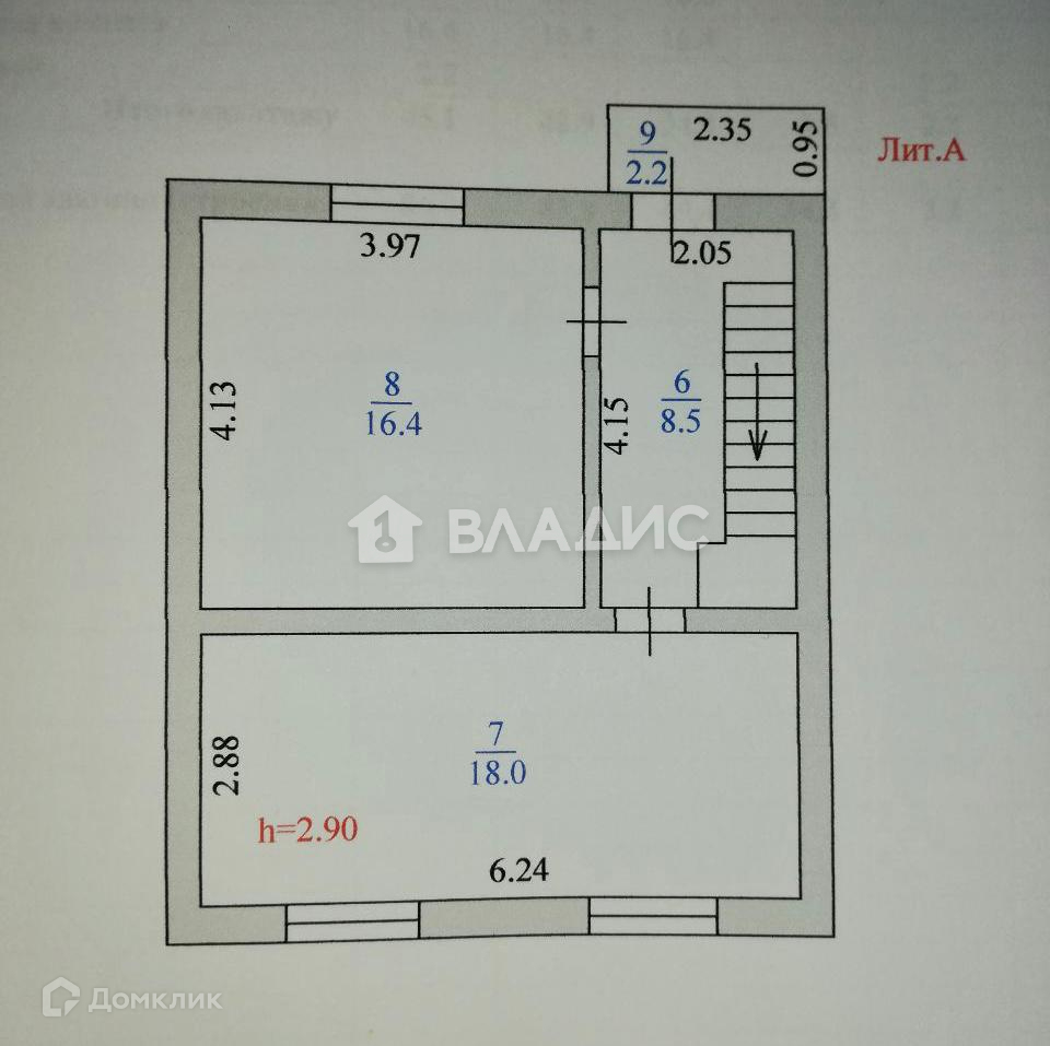 Высота потолков 2.9 м