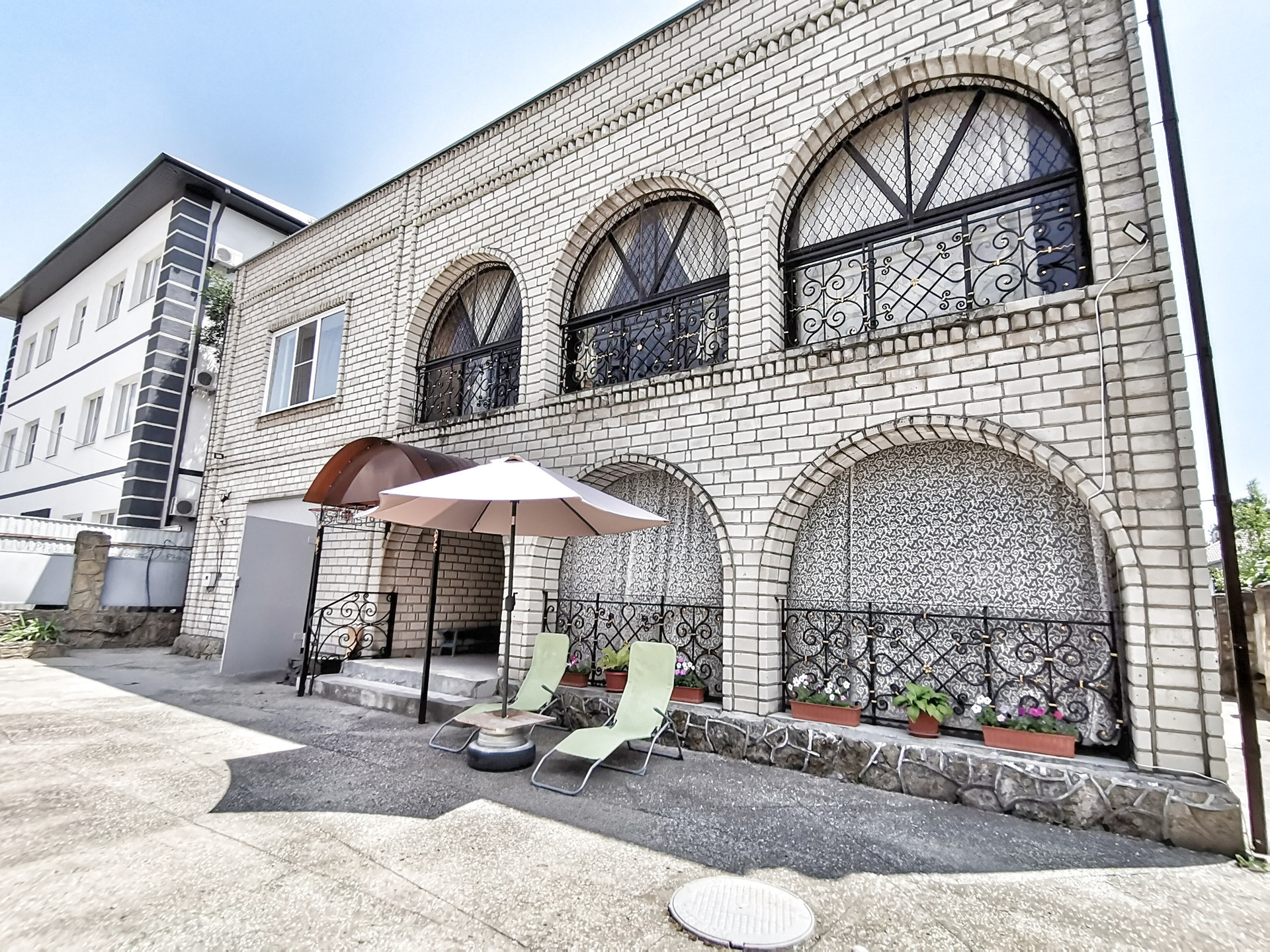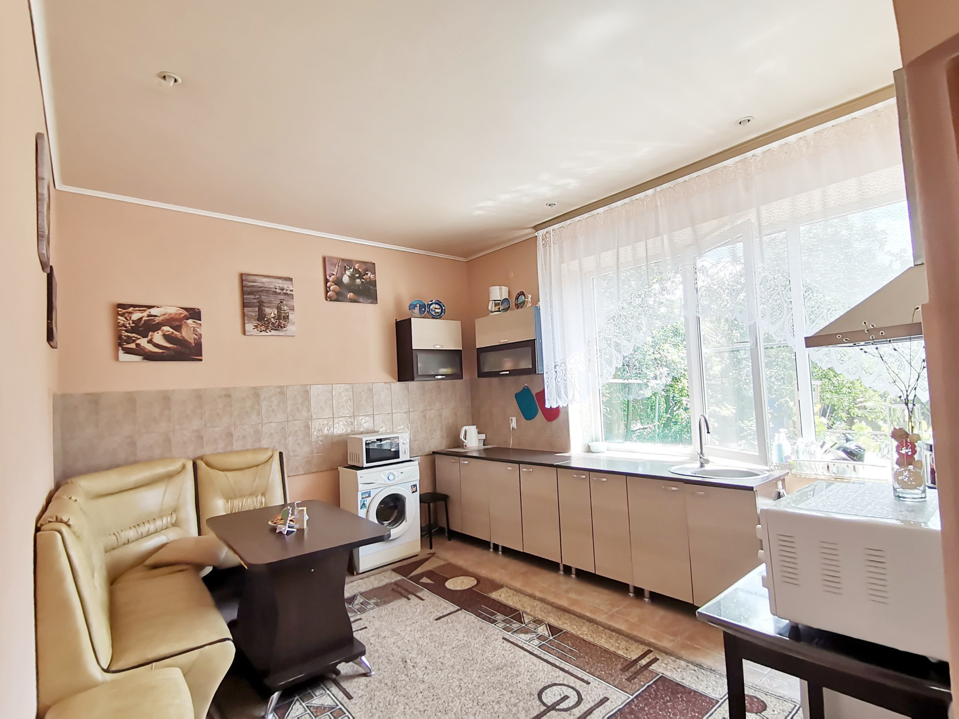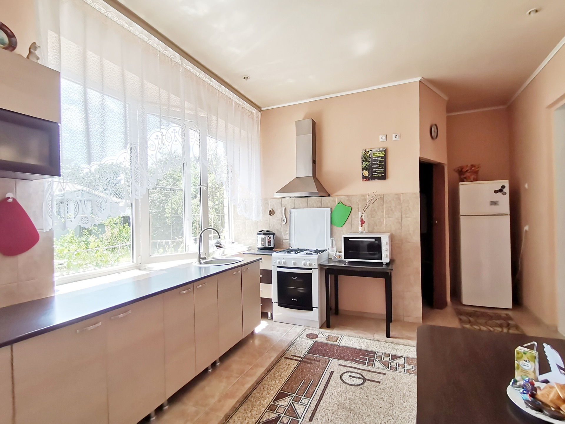 Первый этаж: огромная гостиная, кухня, с/у, котельная, прихожая, большой гараж с выходом из дома, открытая веранда.