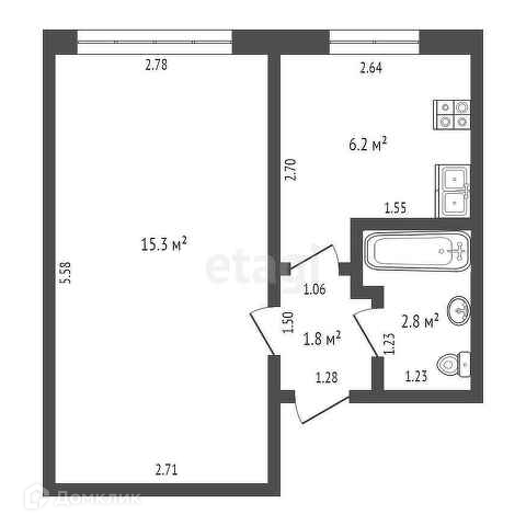 Общая площадь 27.1 м2
