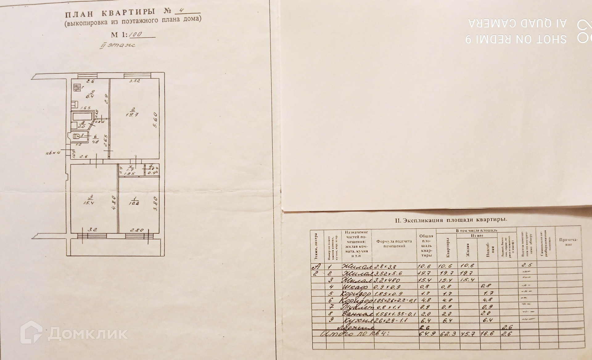 Общая площадь 64.9 м2