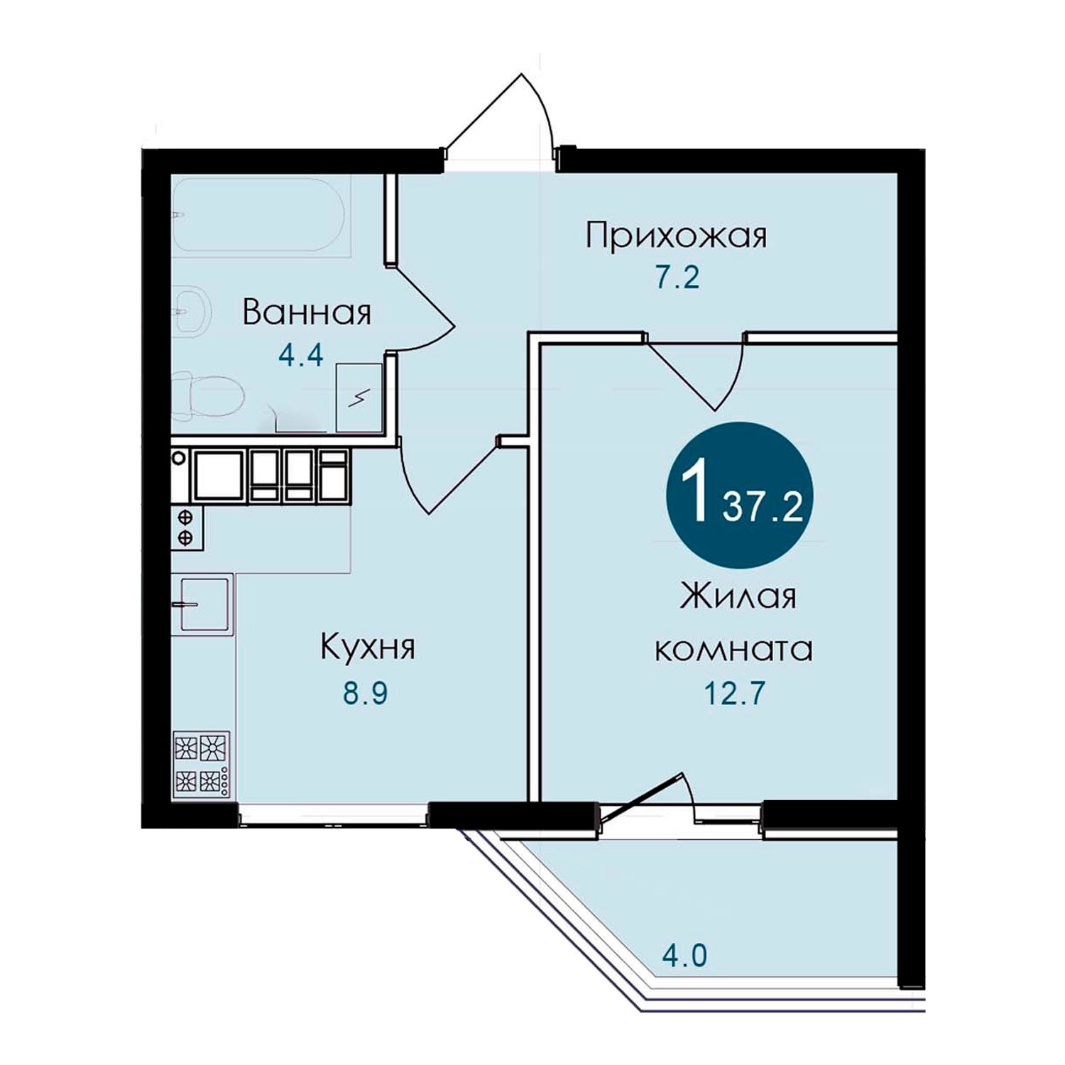 Общая площадь 37.1 м2