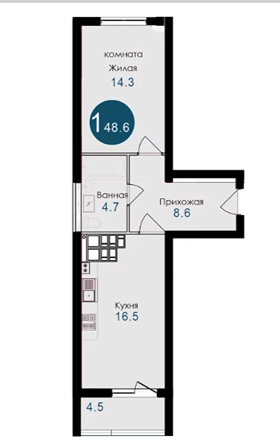 Общая площадь 48.6 м2