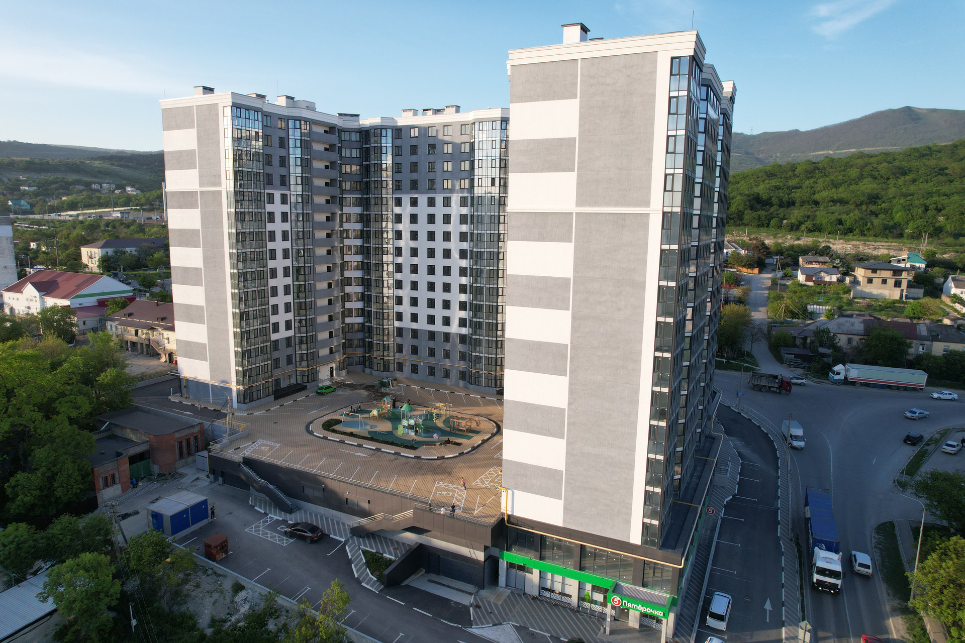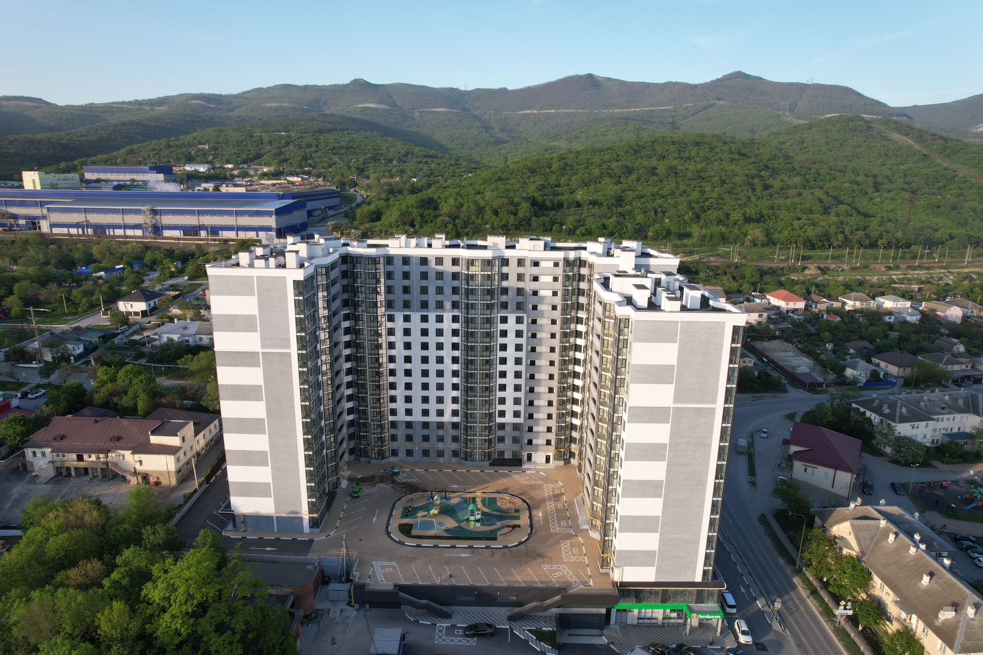 Во дворе комплекса располагаются спортивные и детские площадки, двухуровневый подземный паркинг. На первом этаже магазин «Пятерочка», аптека, пункт выдачи и др. В пешей доступности 2 детских сада, школа, спортивный комплекс, остановки общественного транспорта.