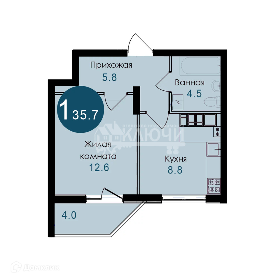 Общая площадь 35.7 м2