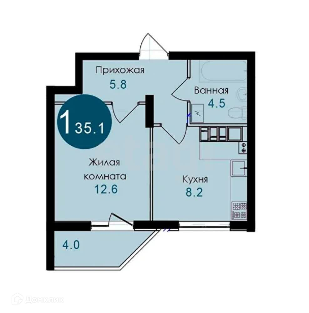 Балкон, лоджия 1 балкон
