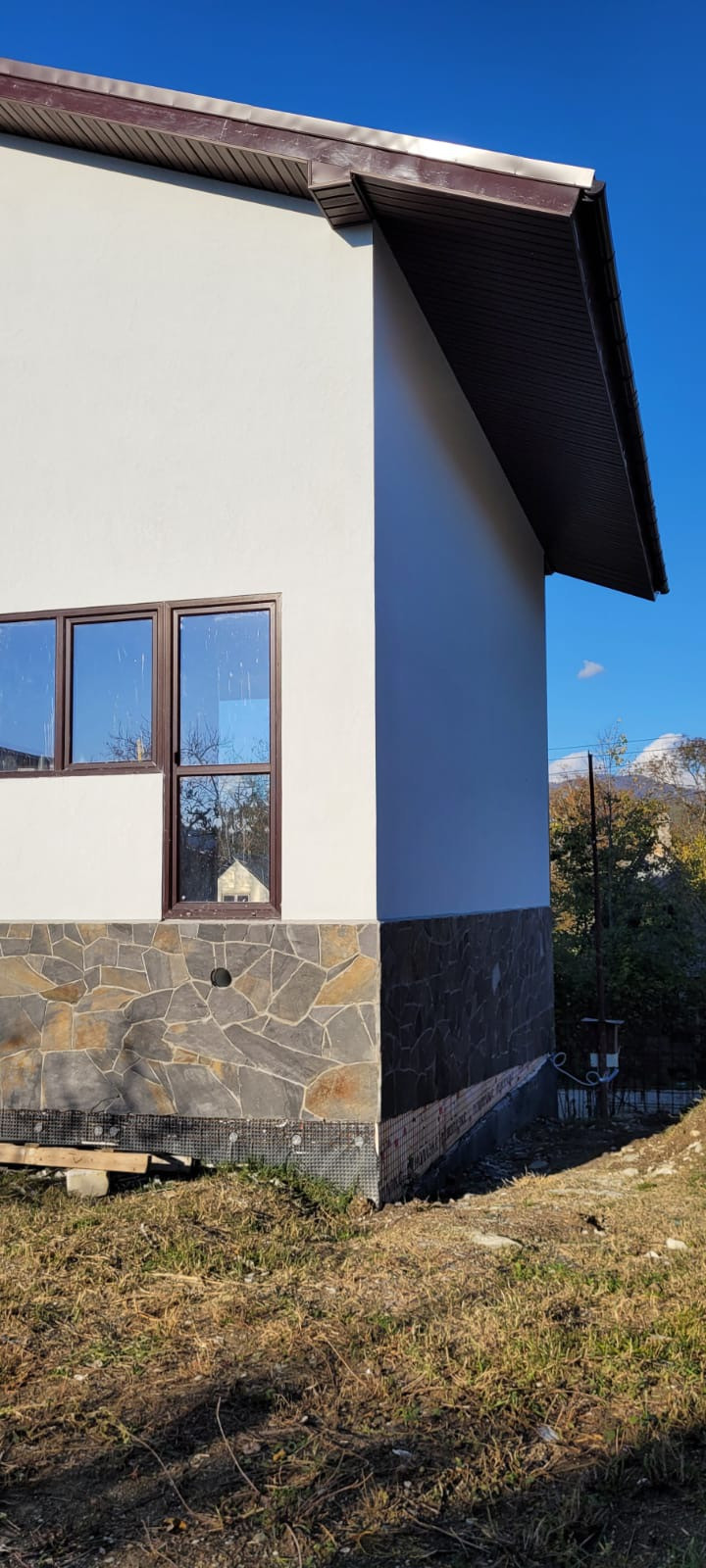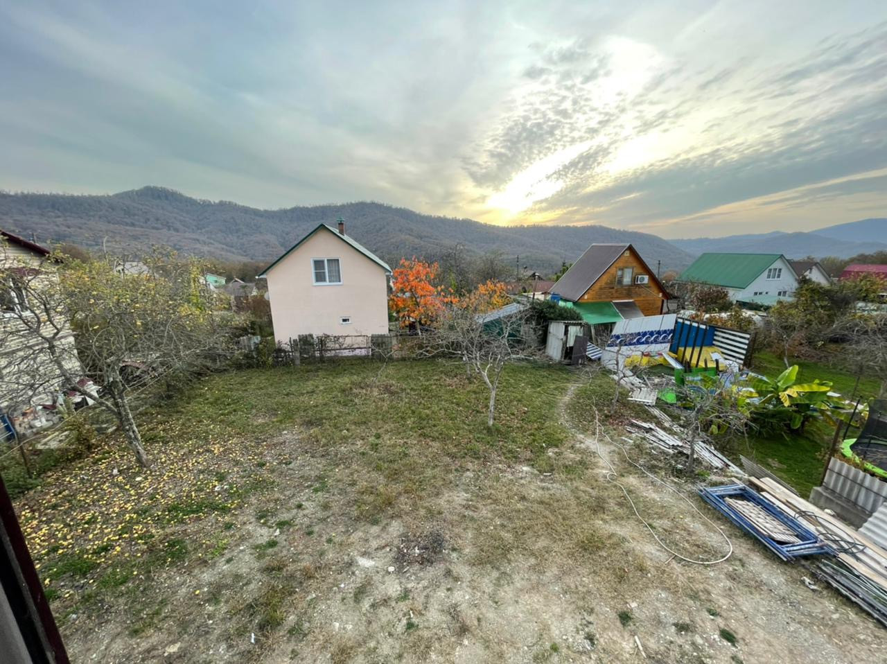 Дом 2 этажа + цокольный этаж(гараж + отдельная жилая комната со своим входом. Участок для дома прямой прямоугольный,  почти 6 соток с плодовыми деревьями(хурма, груша, яблоки). Участок расположен недалеко от выхода в лес (национальный парк).