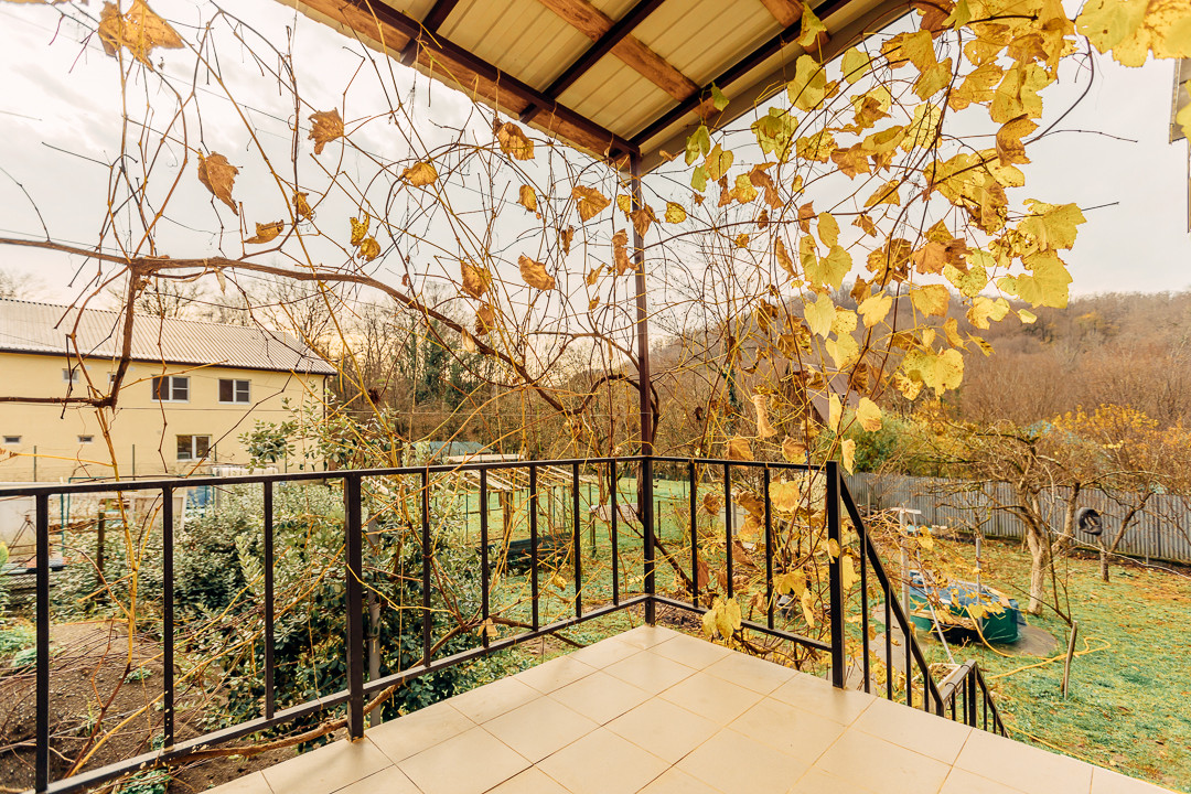 На участке высажены плодовые деревья , хурма, фейхоа, виноград, киви, яблони и груши.