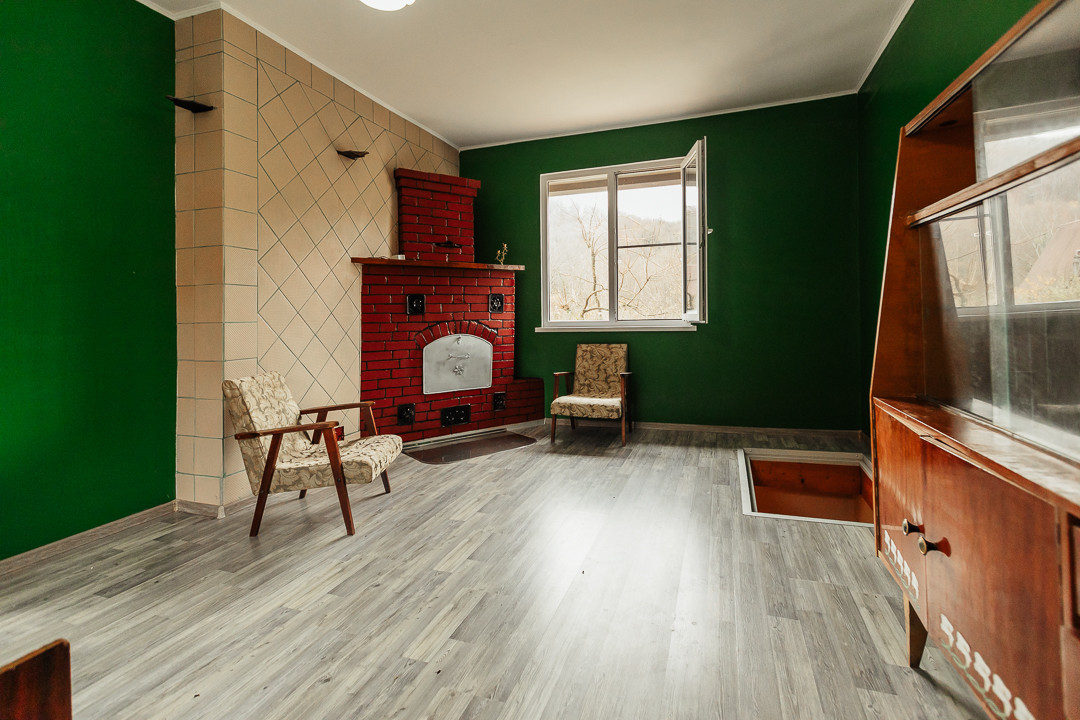 На втором этаже каминный зал и спальня.