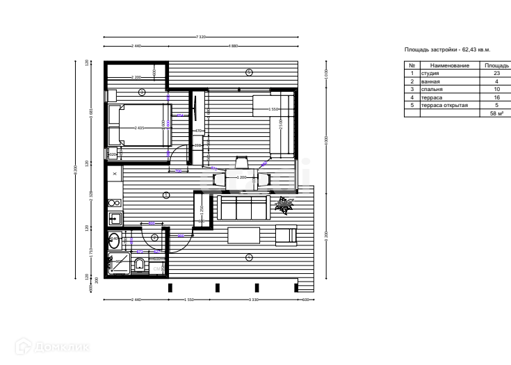 Общая площадь 58 м2