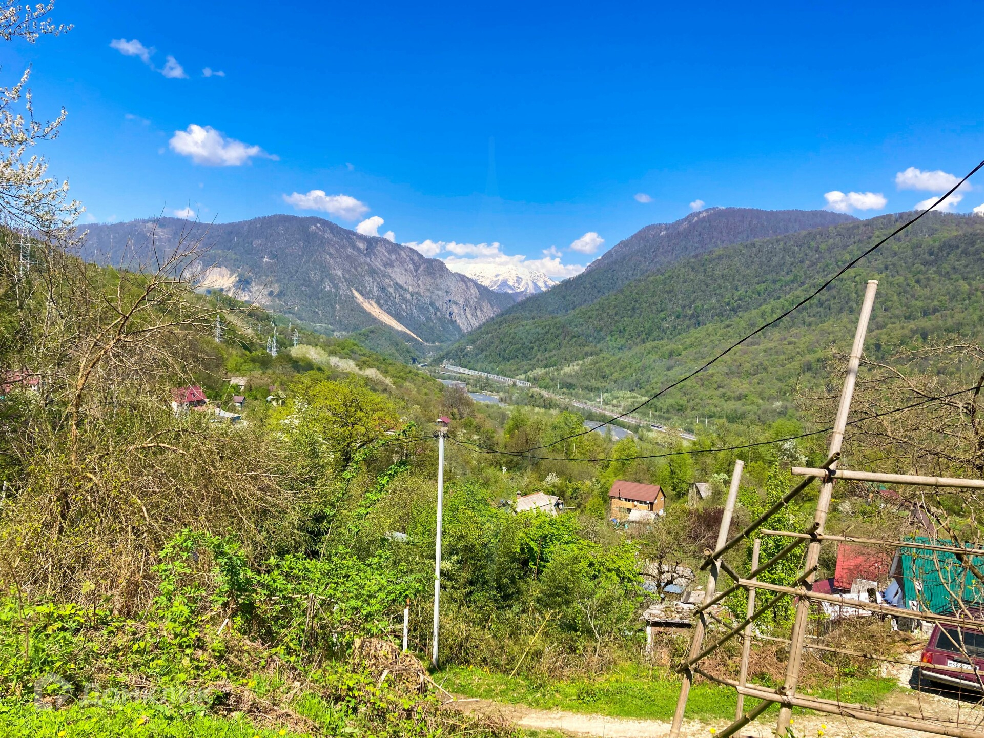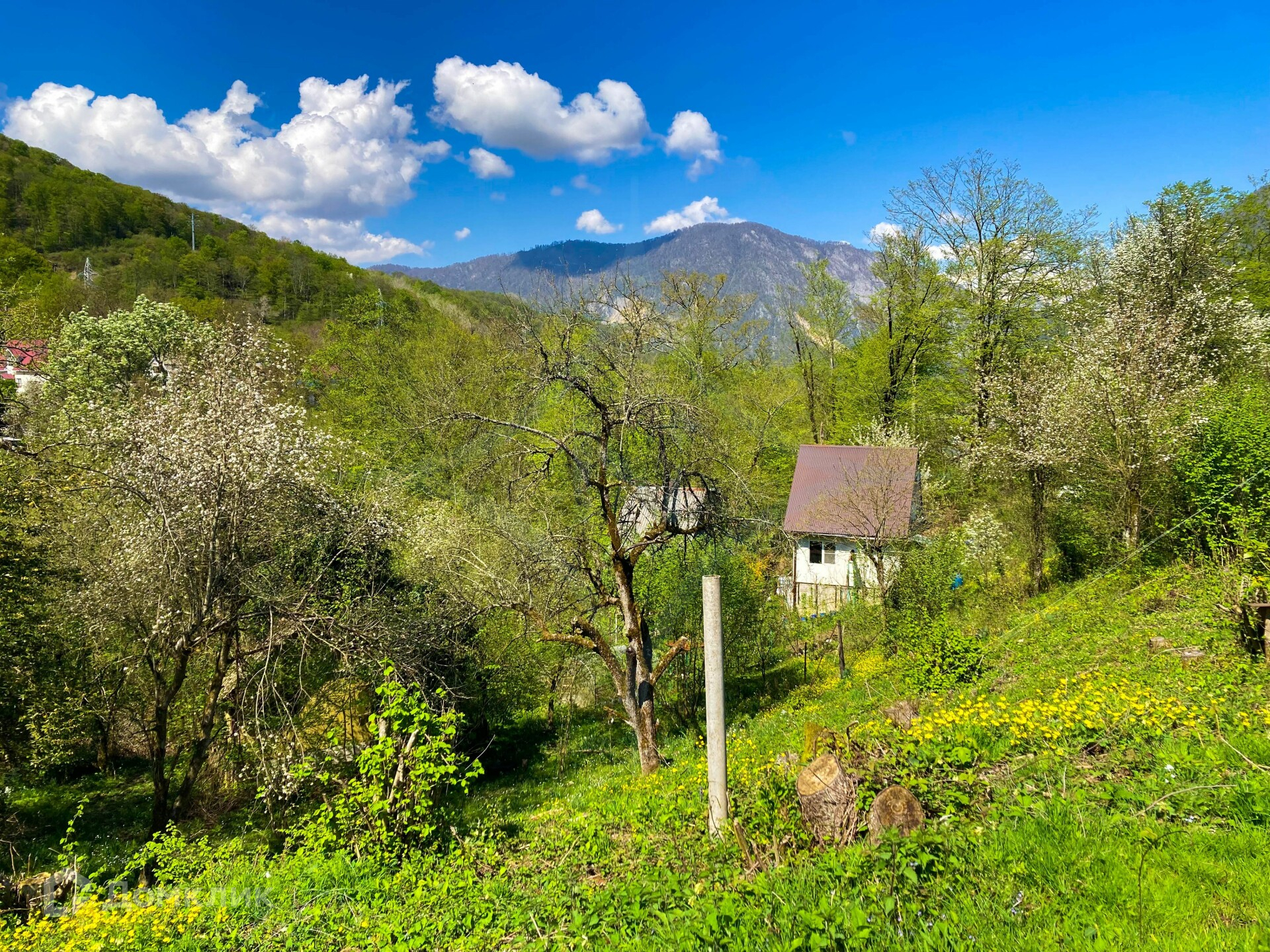 В продаже участок с панорамным видом на ущелье села Монастырь и реку Мзымта.