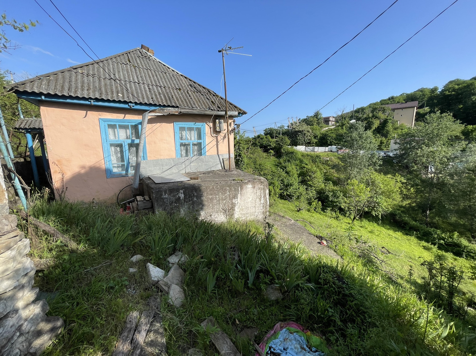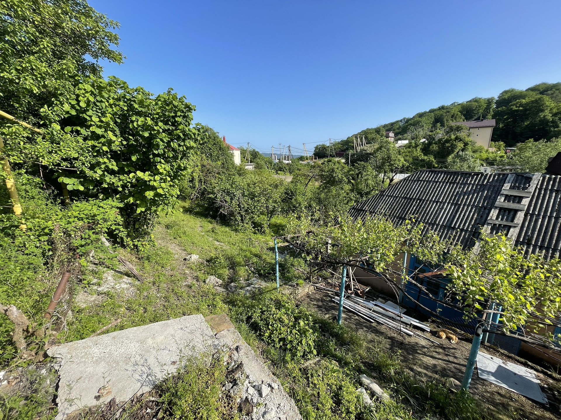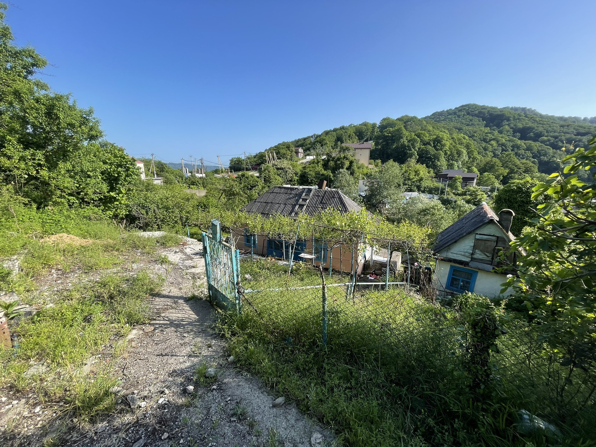Один из участков имеет небольшой уклон, на нём стоит домик 50 м2.