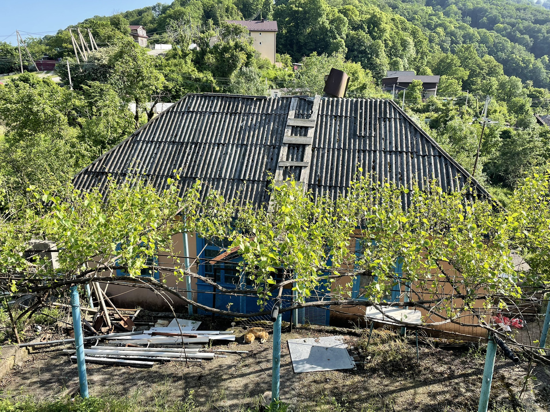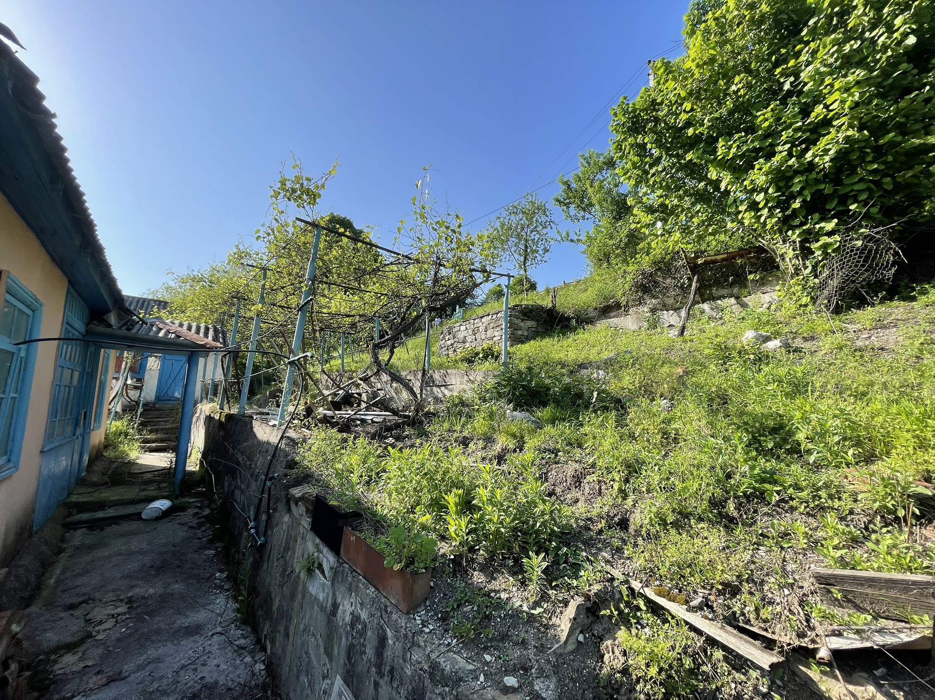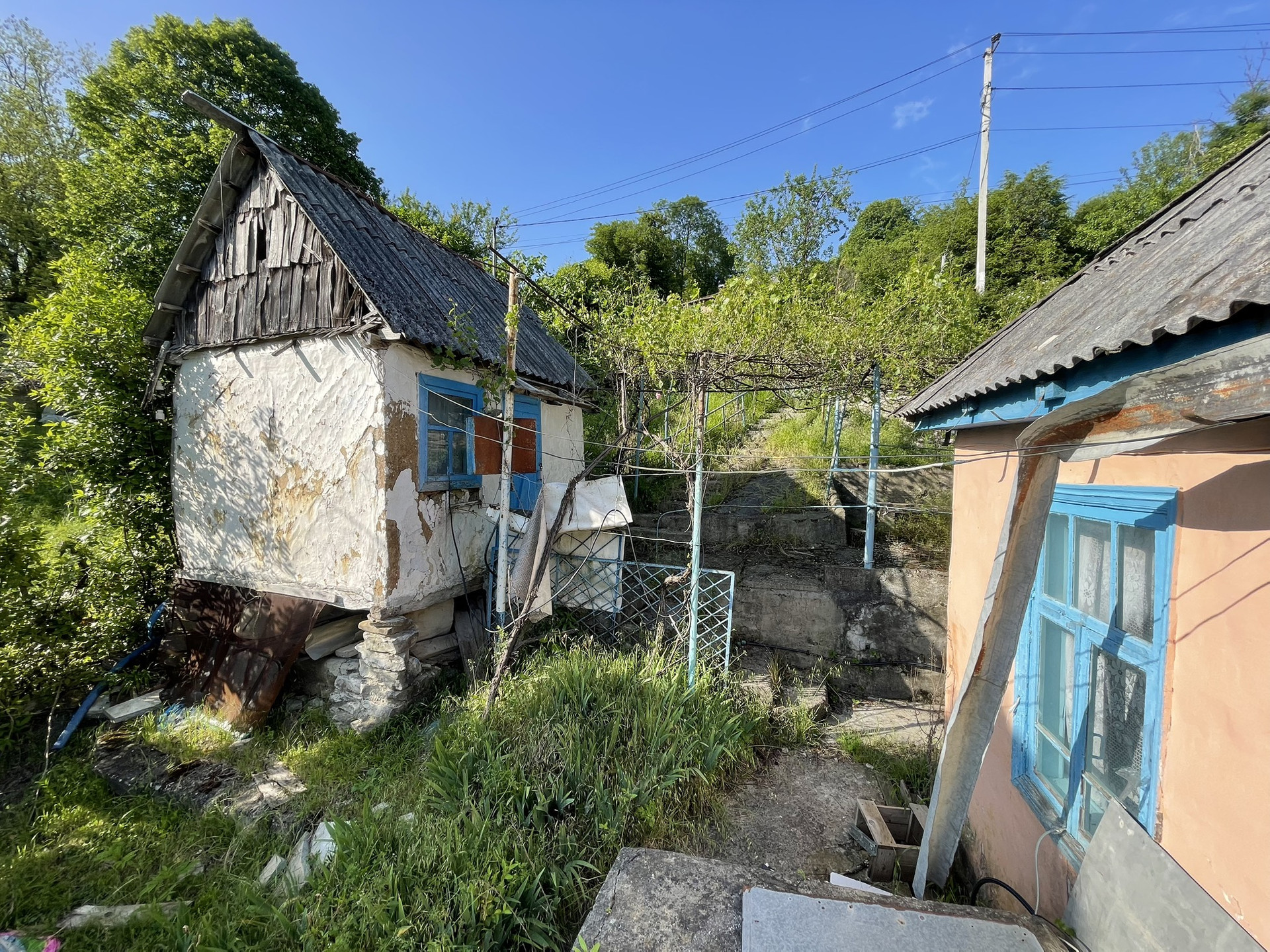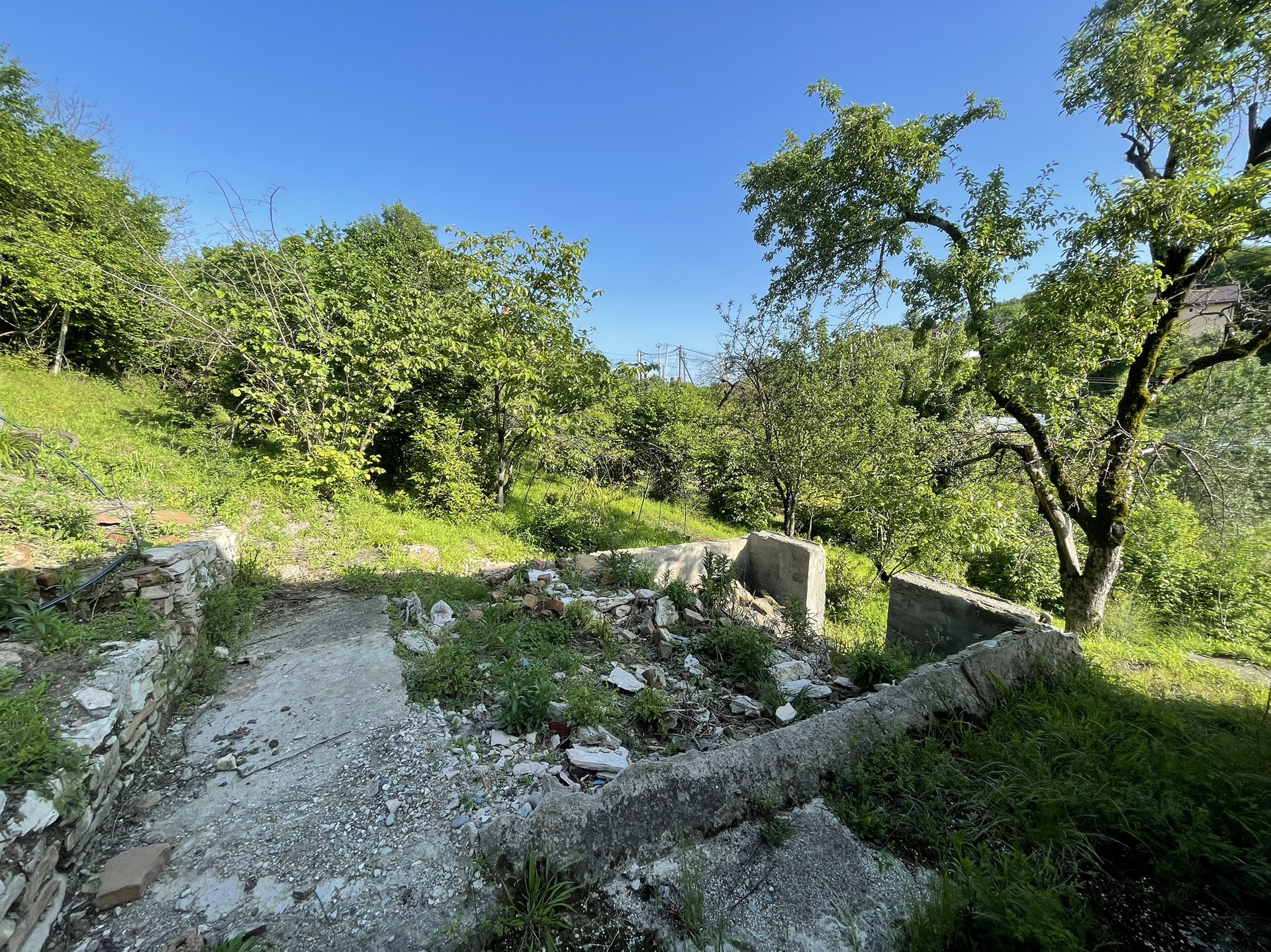 Один из участков имеет небольшой уклон, на нём стоит домик 50 м2.