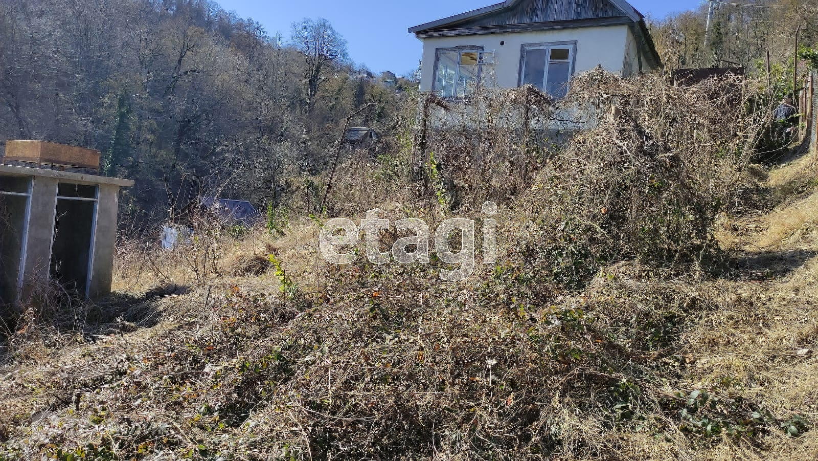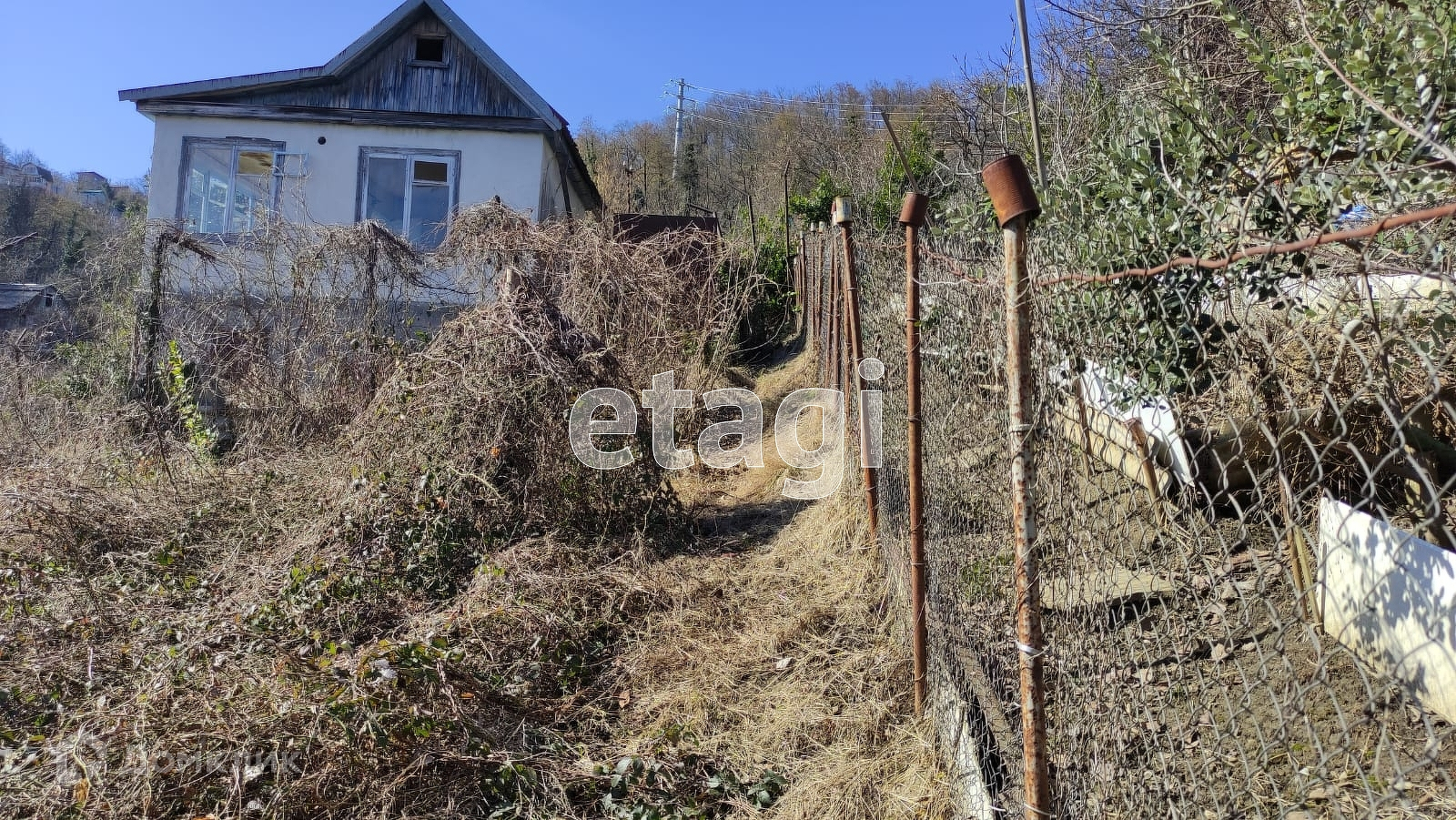 Коммуникации: свет и вода по границе участка.Газ планируется через год.Участок расположен на возвышенности, имеет уклон но с участка открывается потрясающий вид горы и Краснополянское шоссе, до которого можно спуститься за 5 минут на автомобиле.Добраться до Красной поляны можно за 30 минут и до центра Адлера за 25 минут на машине.