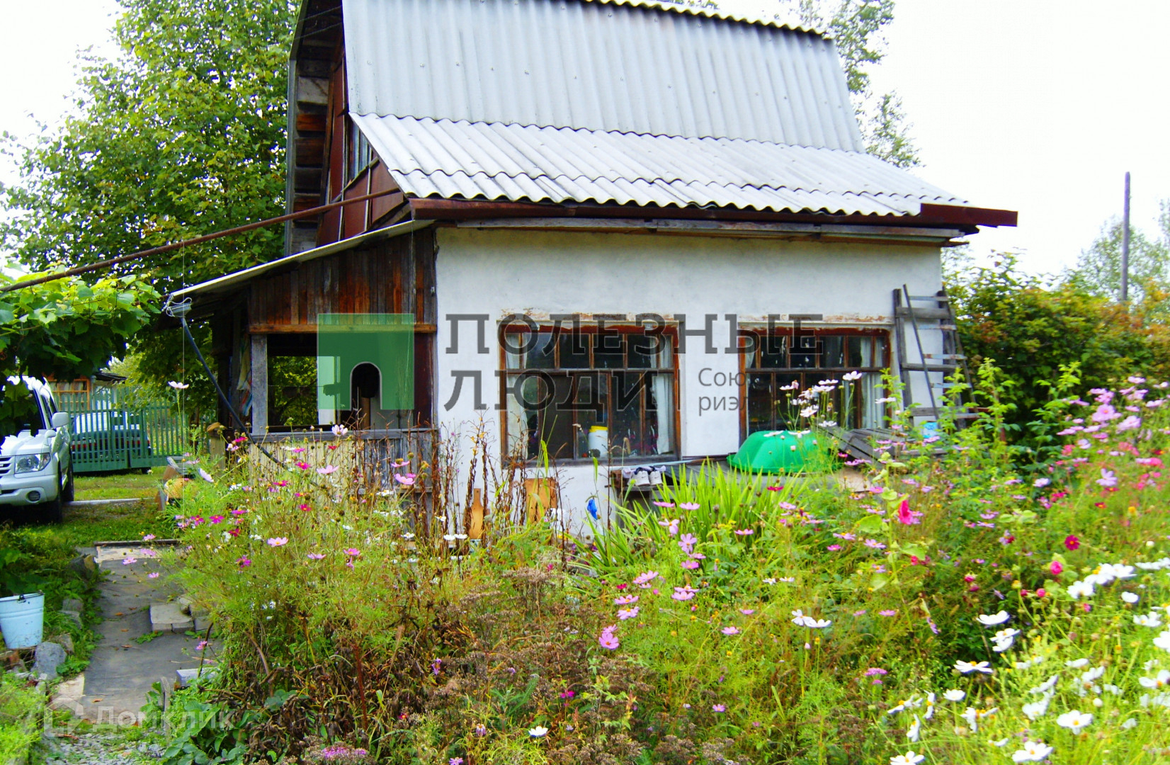 На этом же участке есть контейнер с дачным инвентарем, в конце участка деревянный туалет. Около дома липы, дуб, березки, теневая сторона для отдыха, есть клубника, малина, смородина красная и черная, калина. В доме есть свет 5 квт, есть скважина метров 12.