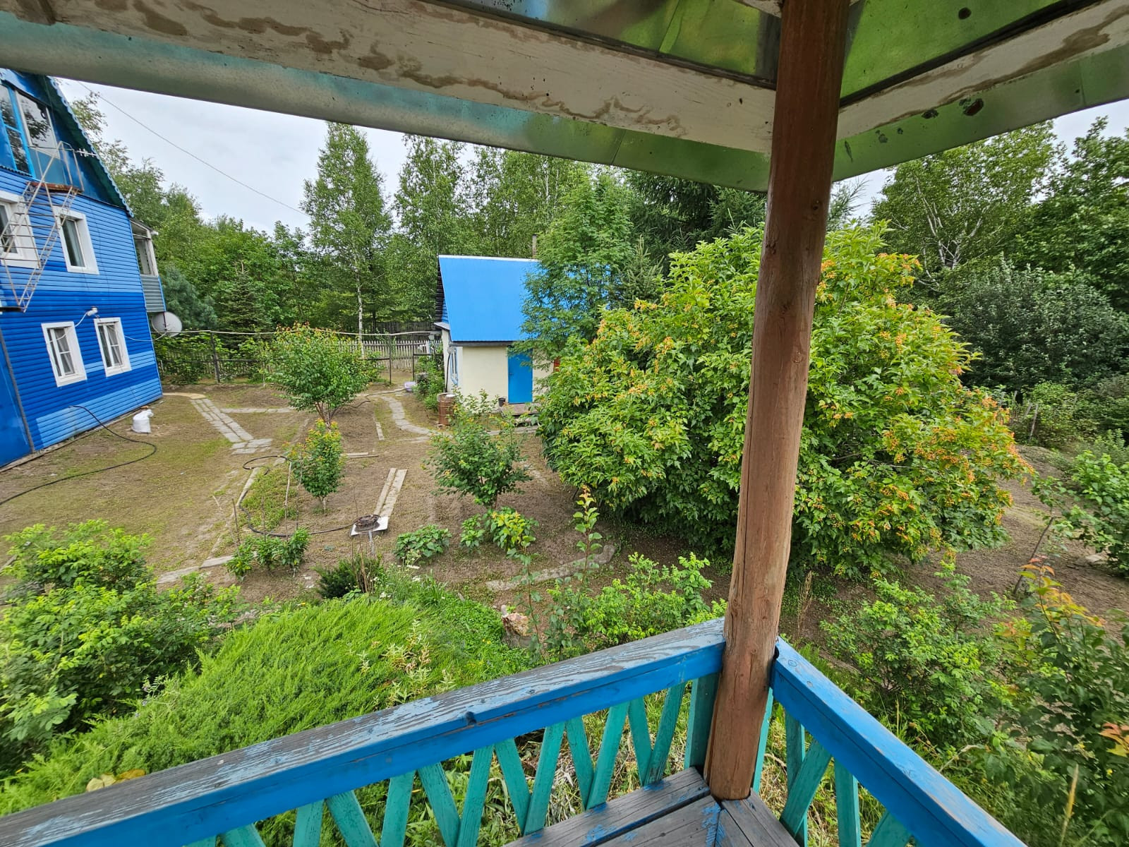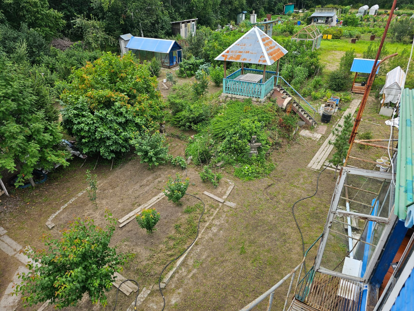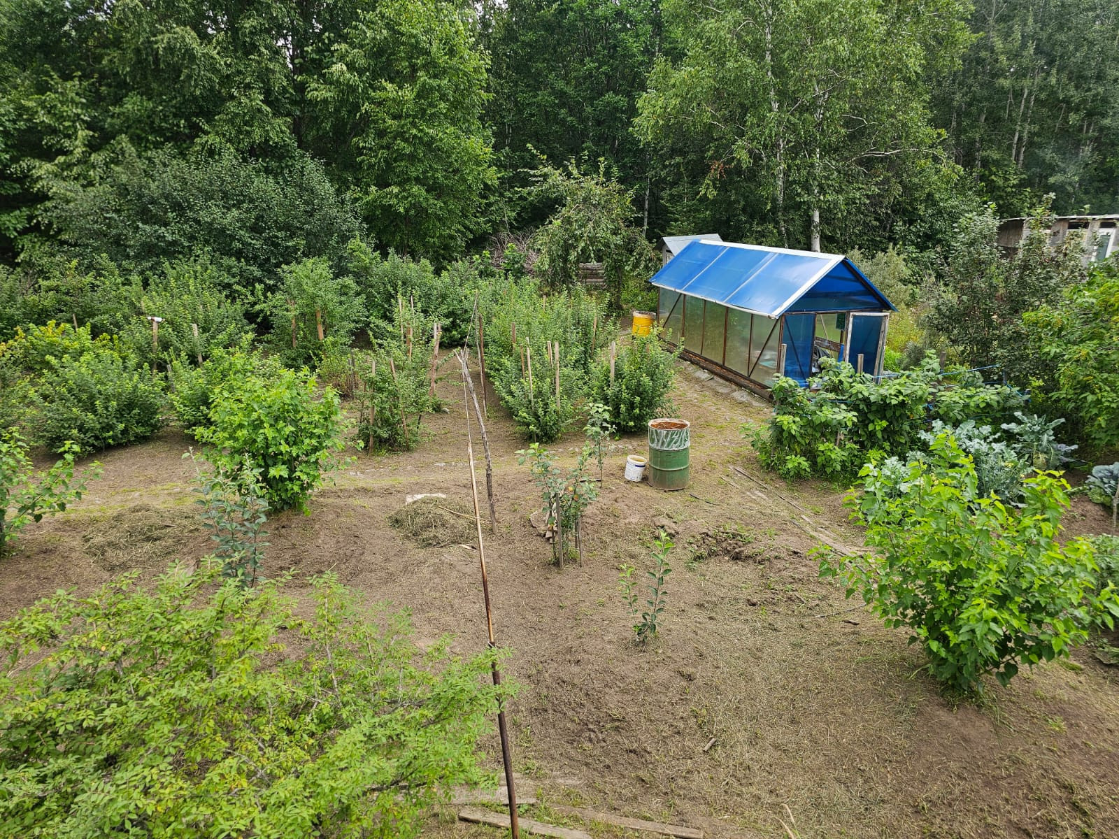 -Участок в 8 соток идеально ухожен, имеет массу плодовых деревьев, ягодных кустов, теплицу, грядок для овощей. Так же имеется клубника, ежевика и виноград.