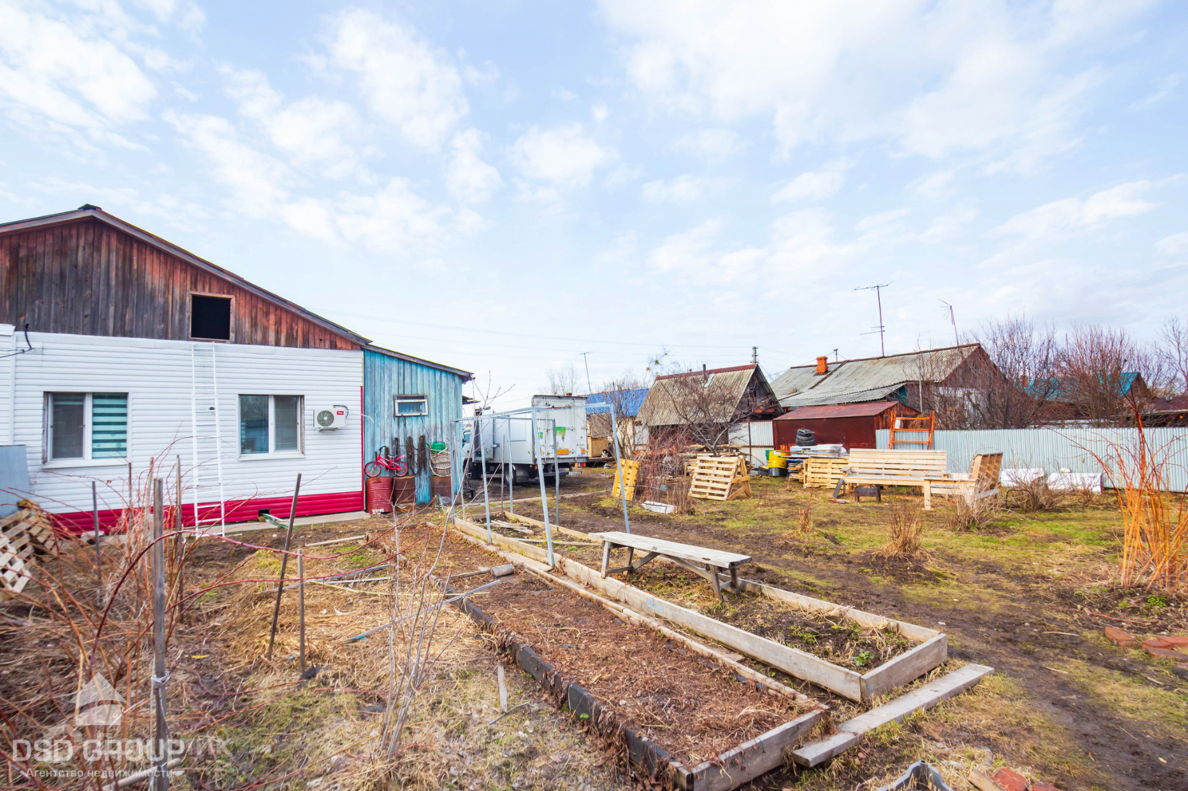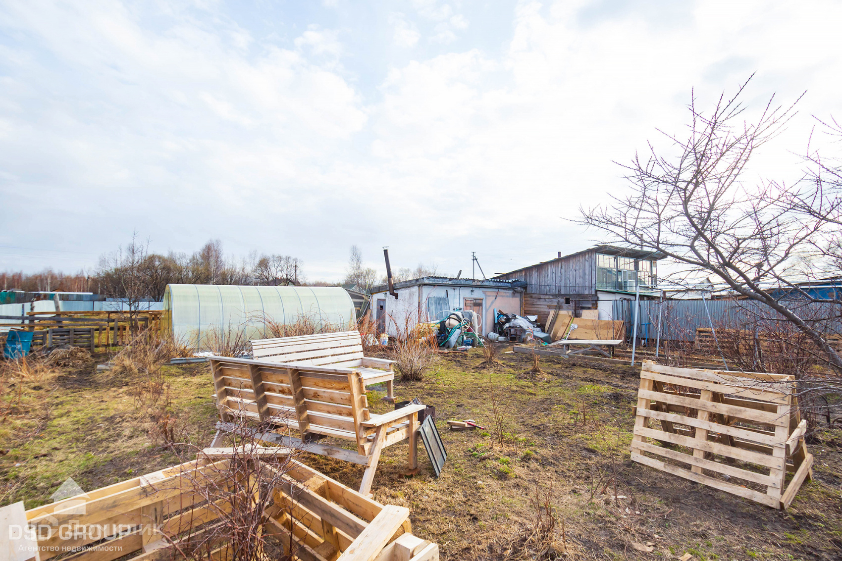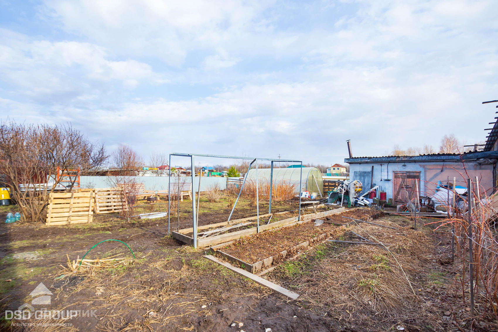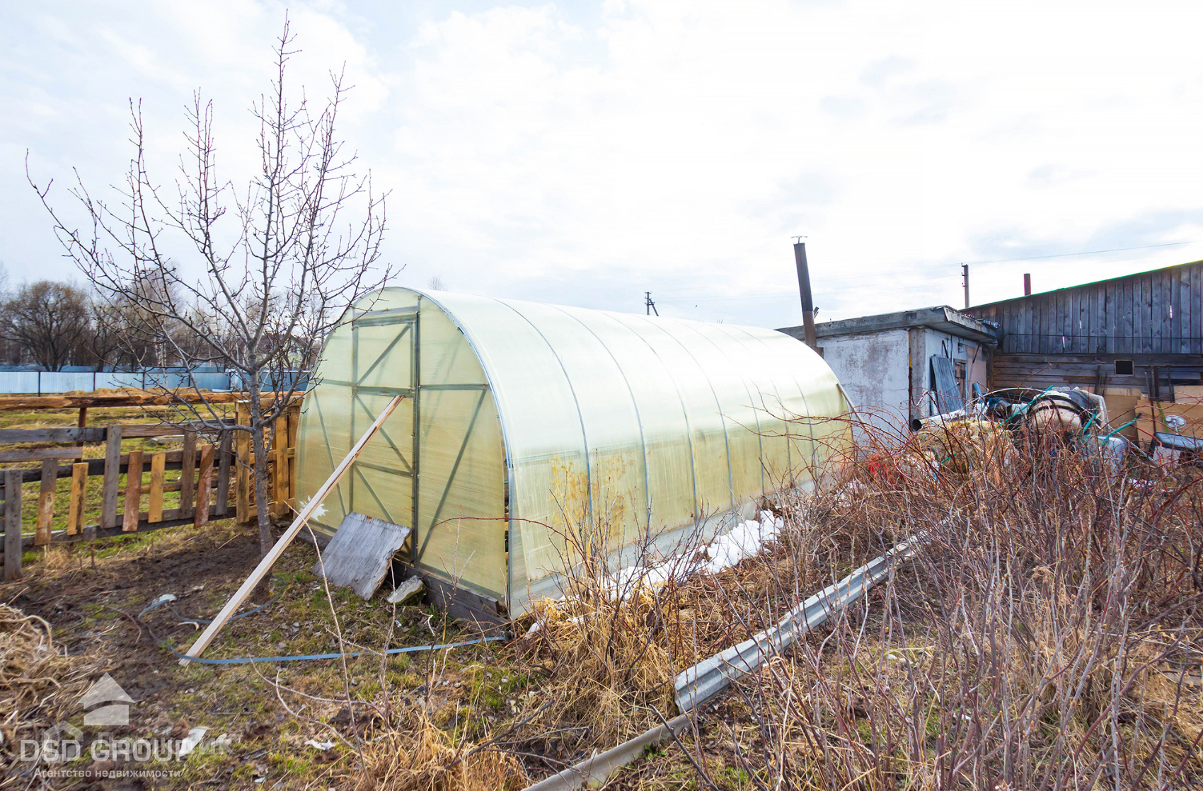 - На участке теплица, сарай, вольер для собак. Из плодовых насаждений есть жимолость, смородина, клубника, малина, крыжовник, вишня