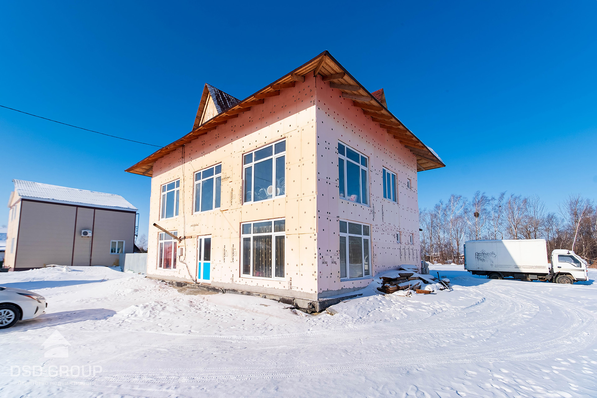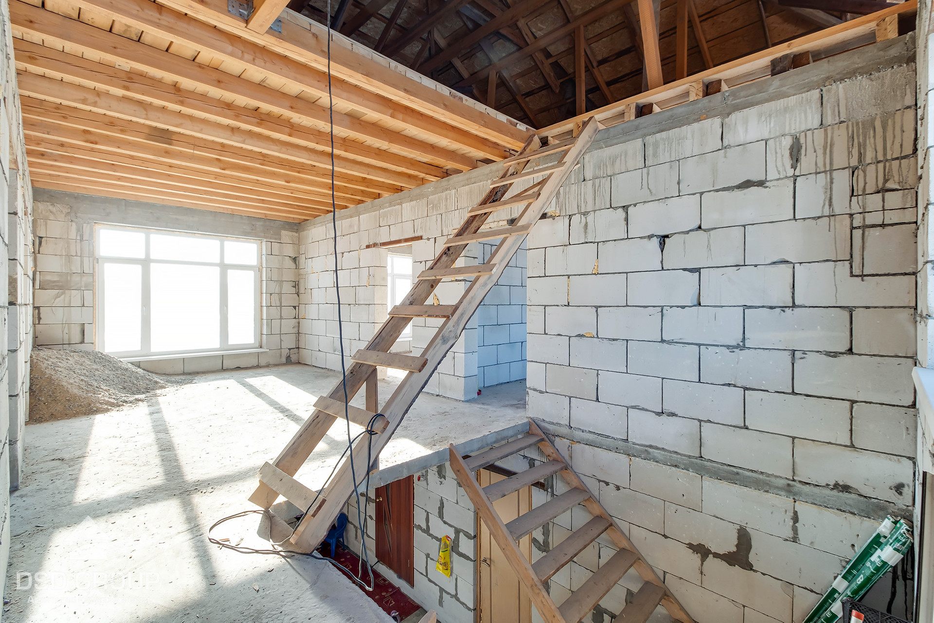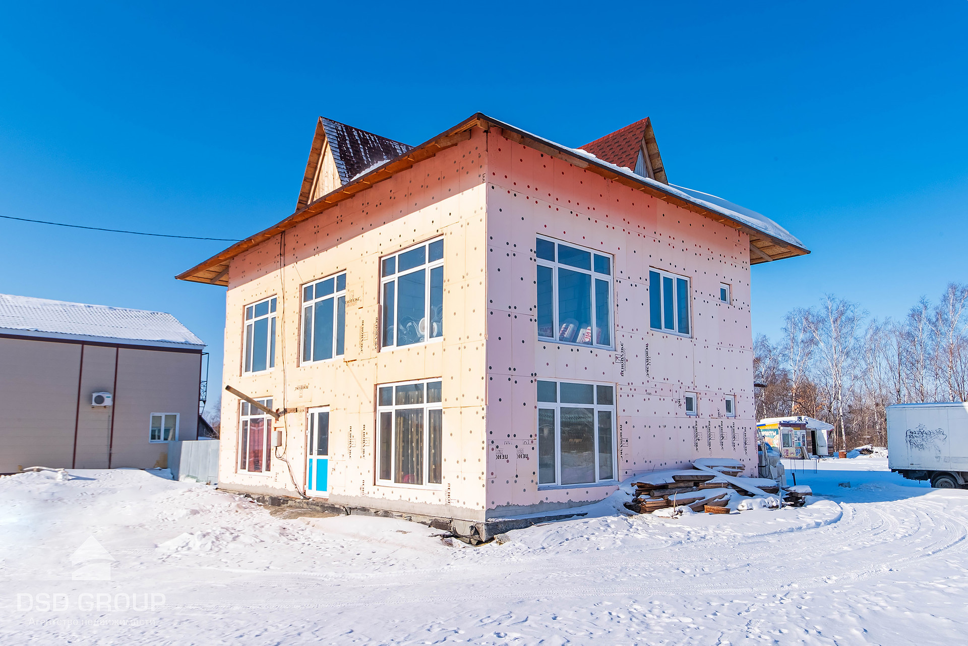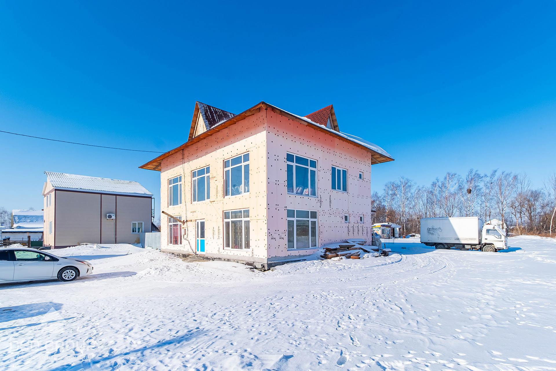 - Материал стен — газобетонные блоки (спец. заказ из Новосибирска); утепление 8см пеноплекс