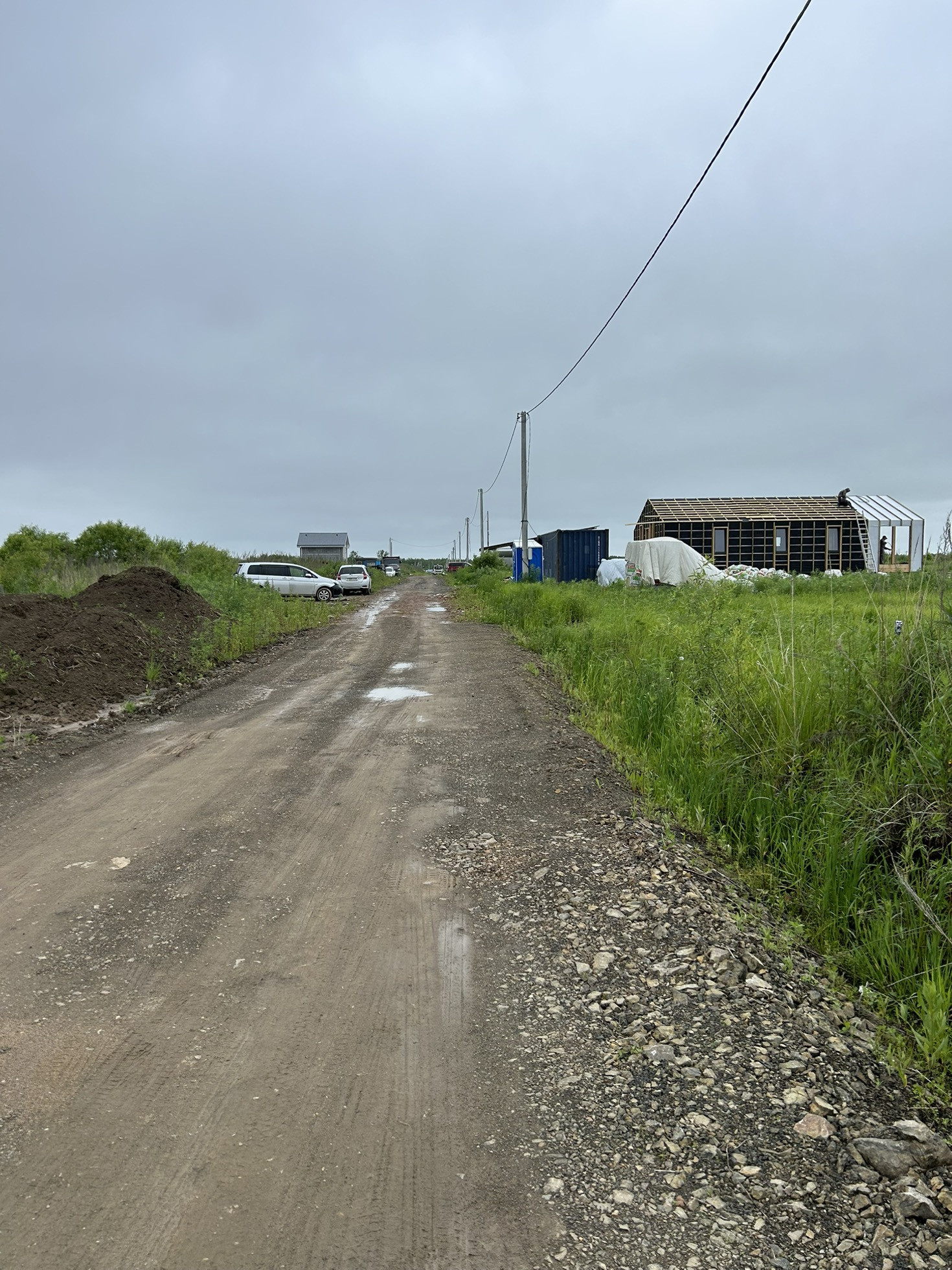 Основную дорогу отсыпали в прошлом году, и сразу соседи начали строительство домов. До 2026 года должны отсыпать дороги по всему кварталу (есть документ от администрации).