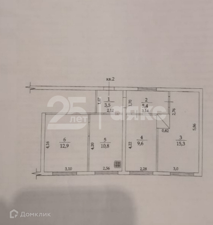 Общая площадь 57.5 м2