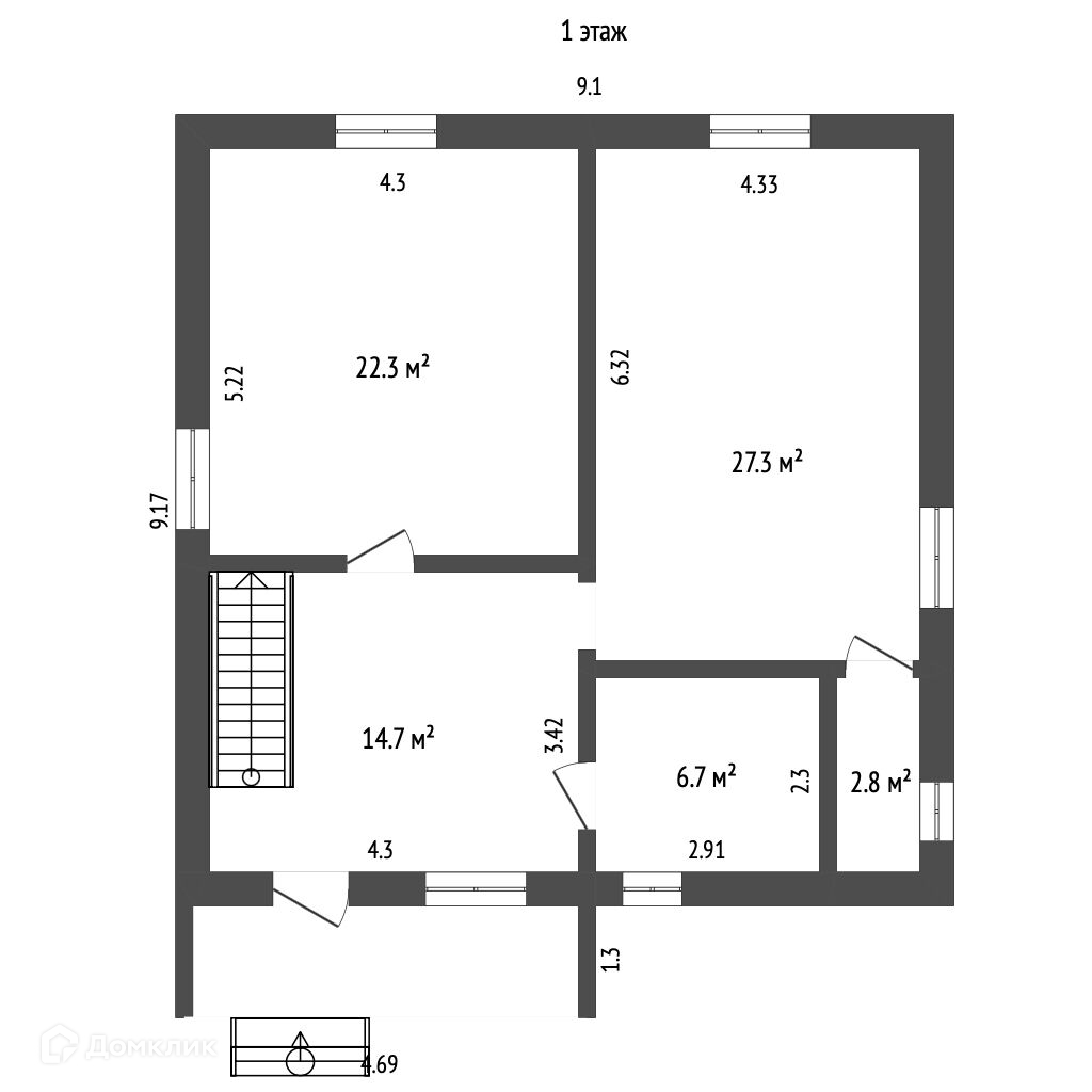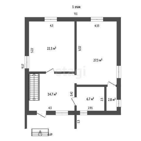 Дом состоит из 2-х этажей.