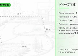 Отличное место для Вашего нового дома! Участок расположен в с. Генеральское, до моря 7км (Солнечногорск) 25 км (15 минут) и Вы уже в Алуште В селе есть магазины, детские сады, школы Дорога асфальтированная, и также есть грунтовая дорога для тяжелого транспорта Вода и электричество находятся 200м от участка Природа, чистый воздух, великолепны... |