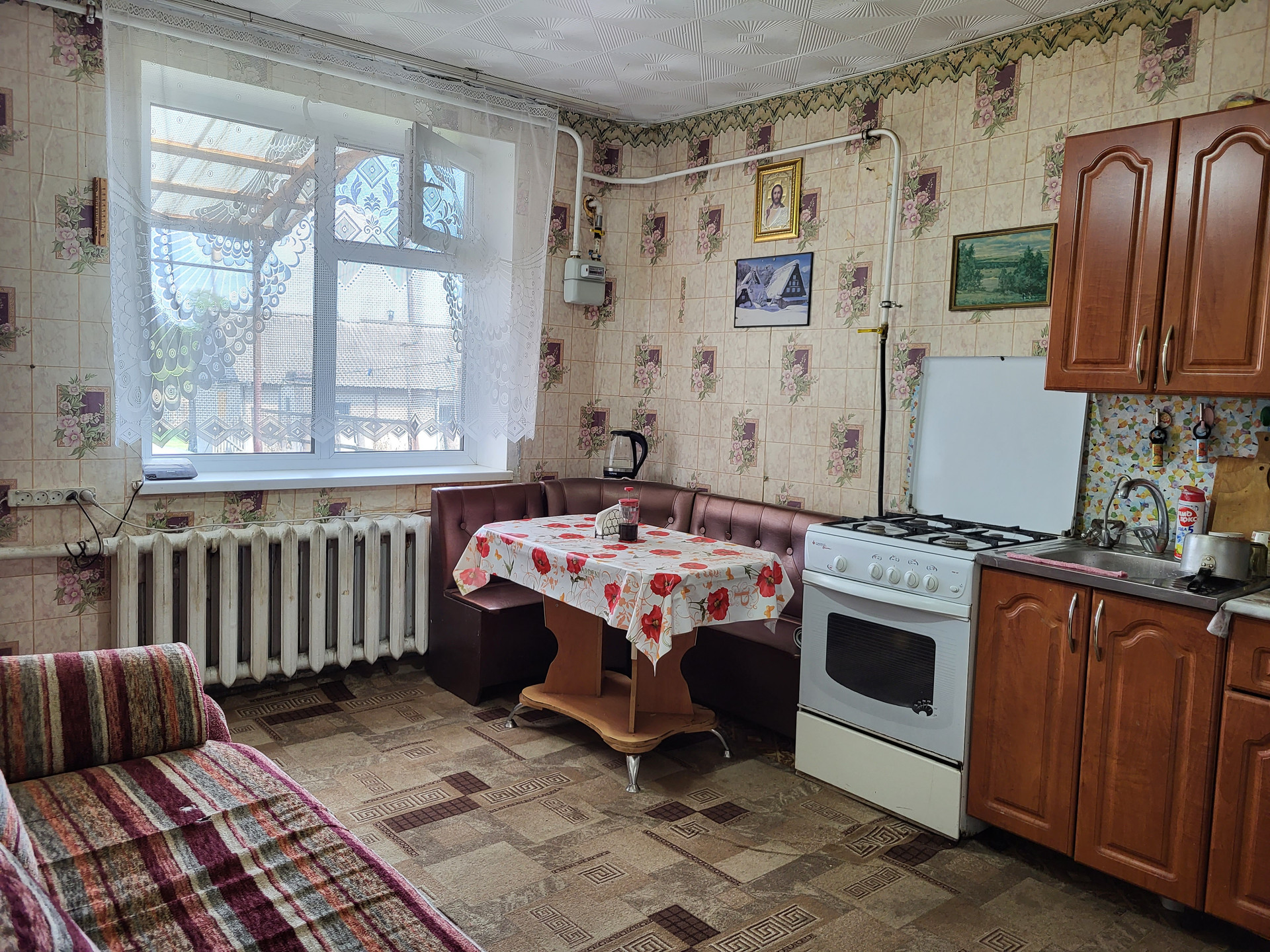Дом полностью благоустроен: отопление газовое, водопровод, канализация, установлен электрический водонагреватель. Окна ПВХ. На территории располагаются сад с плодово-ягодными деревьями и кустами, огород под грядки и огород под картофель. Также есть склад, сарайки, гараж, баня, теплица, 2 погреба- в доме и на улице. Соседи хорошие. В селе имеются детский сад, школа, магазины, дом культуры, библиотека, фап. Дом свободен для проживания. Трасса от Омска до села почти вся новая, ведутся ещё ремонтные работы.