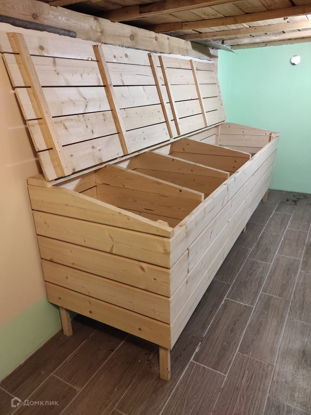 Дополнительно ко всему , есть добротный подвал, со стеллажами, полочками и ящиками для хранения.