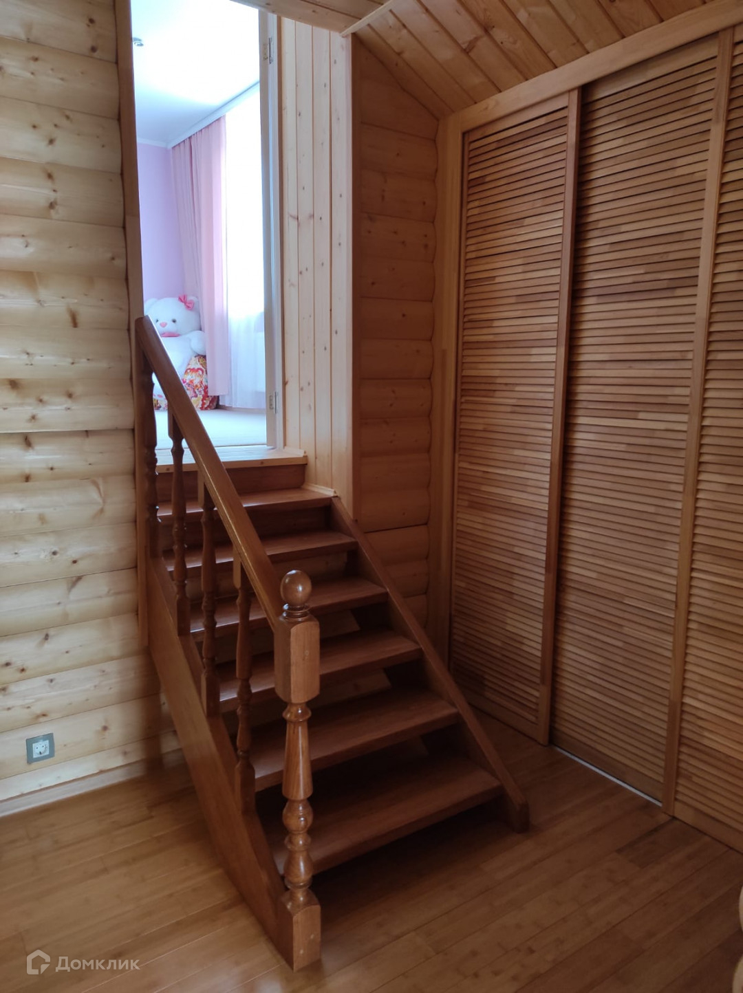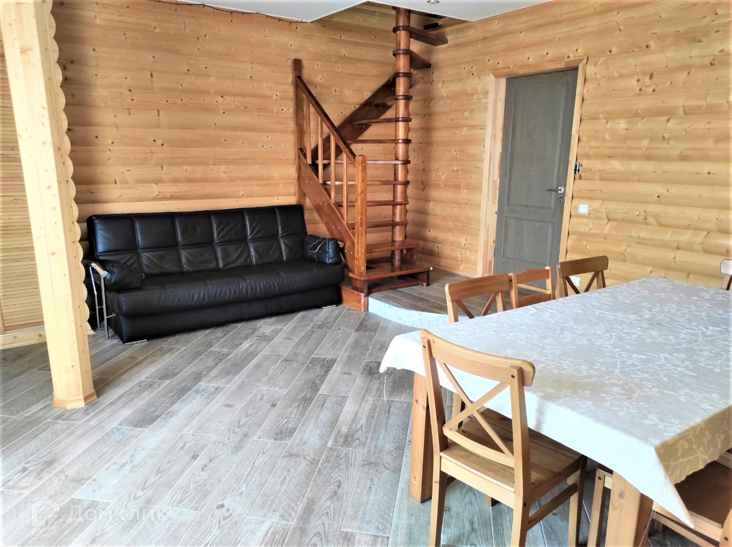В доме уютная обстановка, теплые тона,  отдельная кухня переходит в  столовую, широкий коридор со встроенными шкафами, просторная основная комната поделена на несколько зон: кабинет, зона отдыха и спальное место,  в центре установлен функционирующий камин, который ещё больше добавляет уюта в дом. Просторный санузел, шикарная сауна+ есть отдельно баня. На втором этаже также есть санузел и две спальные комнаты.