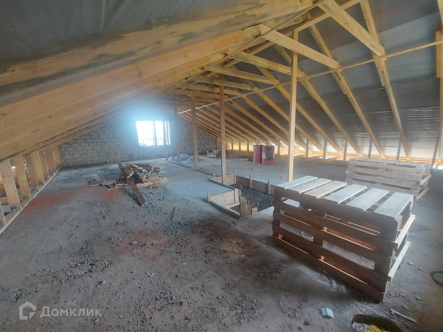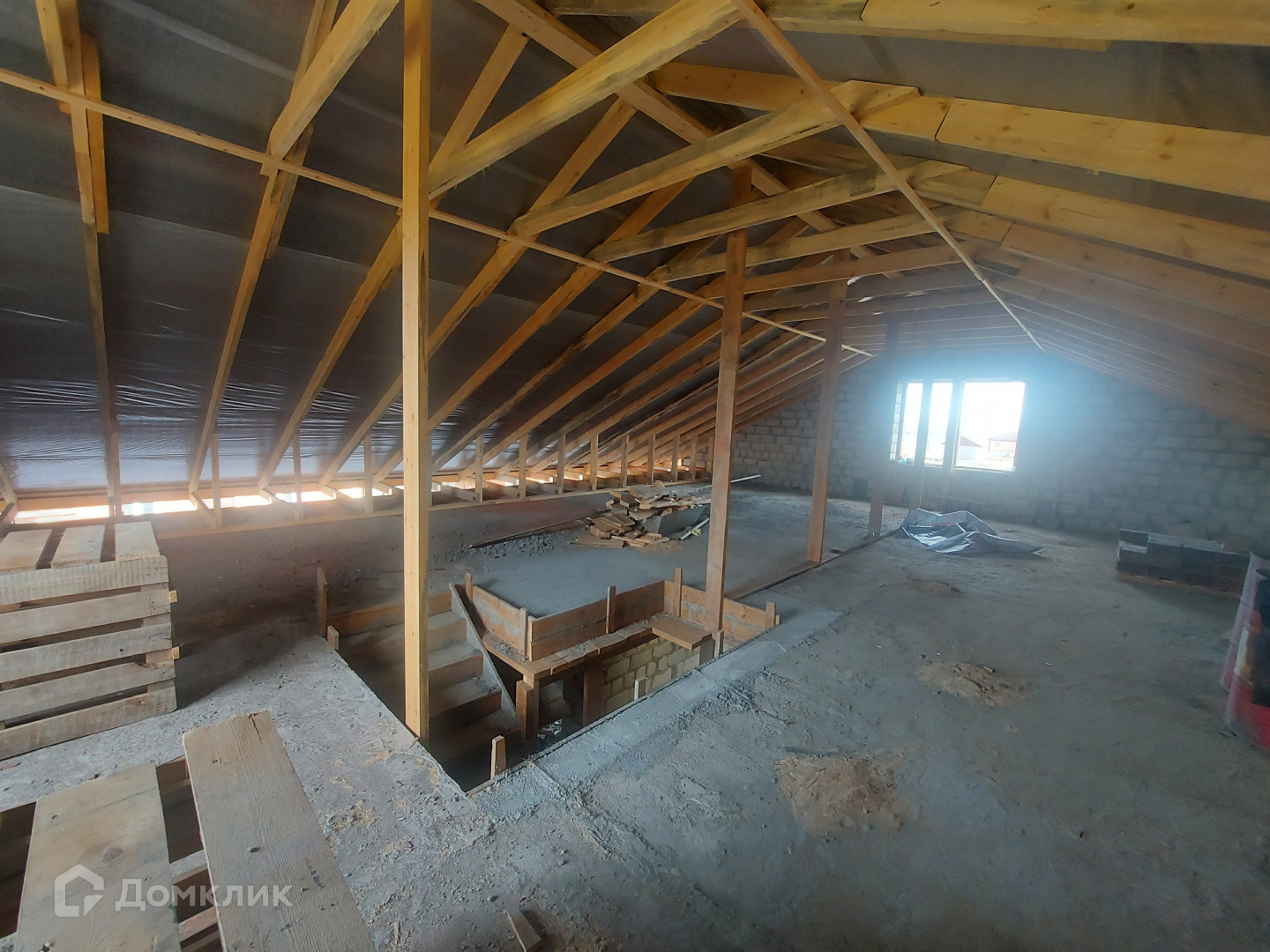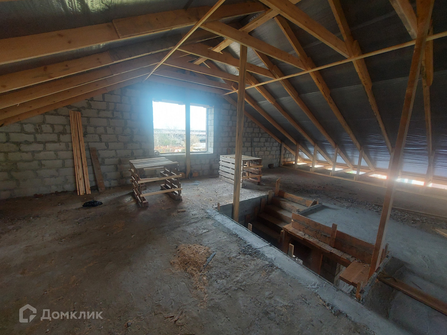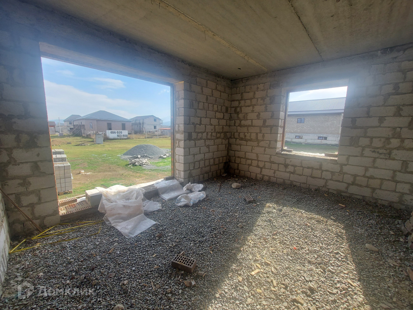 Под каждой стеной армированный ленточный фундамент, глубиной 1 м, шириной 0.60 м, цоколь высотой 1 м, шириной 0.50 м. Стены дома высотой 3.15 м из целого пеплоблока, облицованные кирпичом. Все стены связаны армированным поясом и установлены бетонные плиты перекрытия.