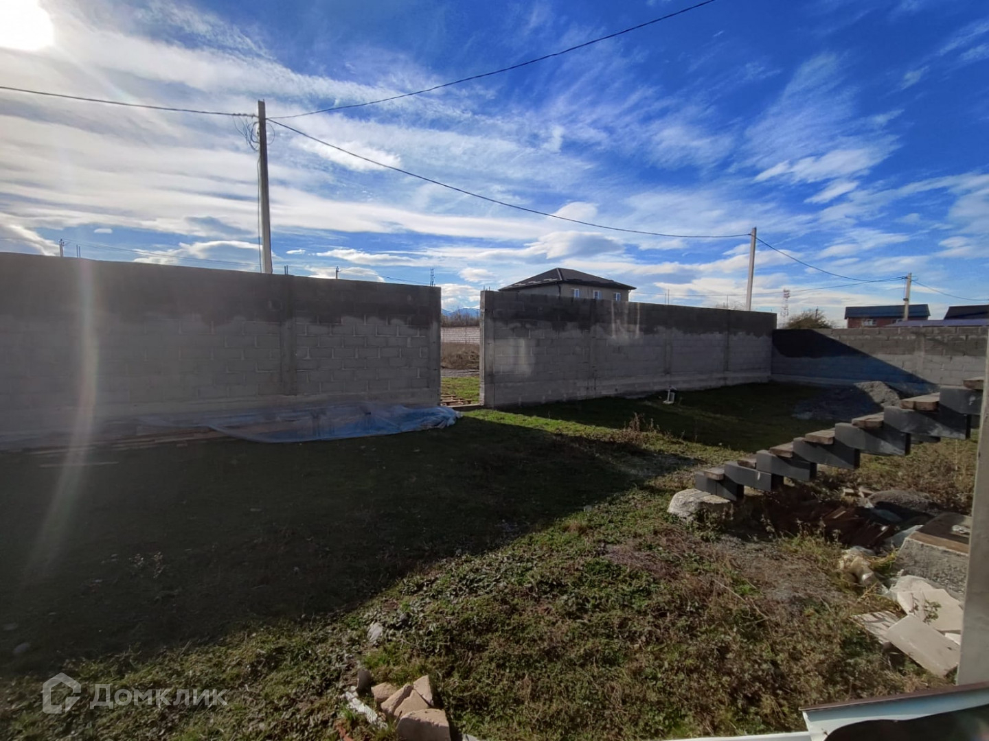 Участок огорожен капитальным забором.