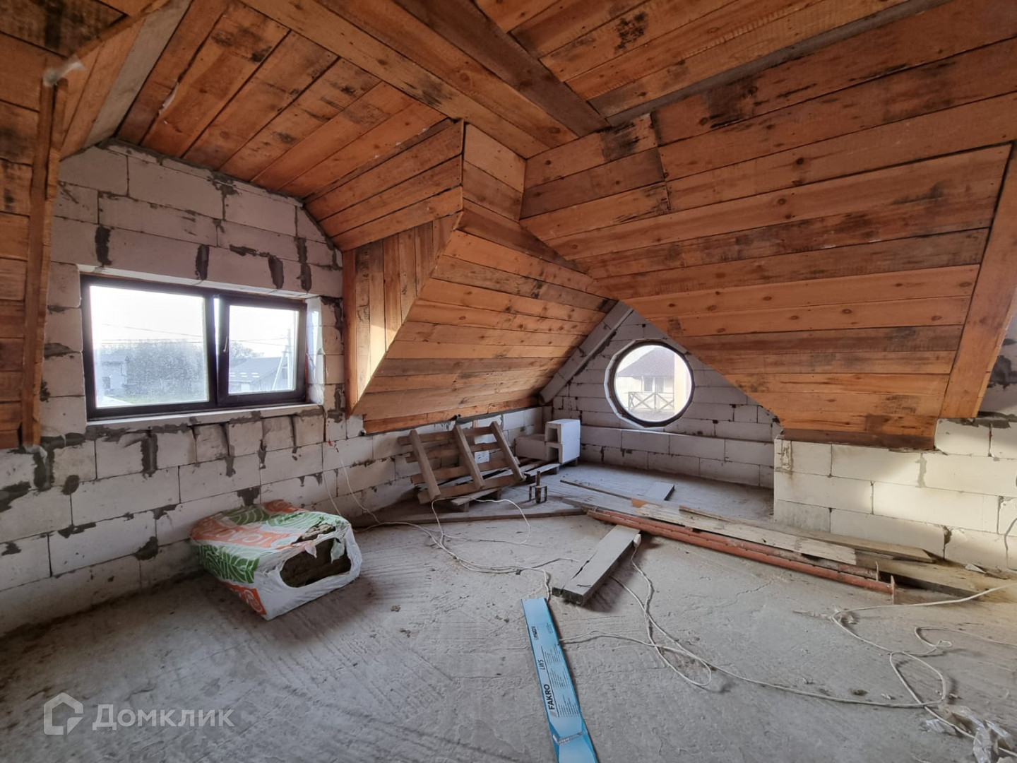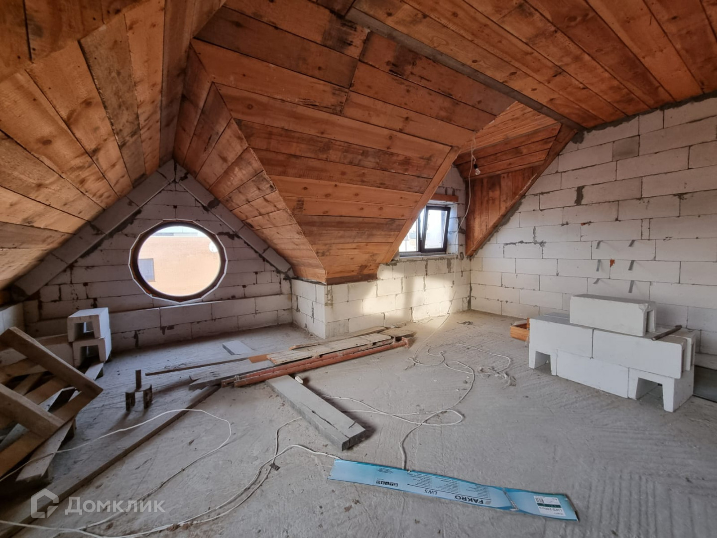 Дом имеет два этажа и общую площадь 210 квадратных метров. На первом этаже находится две комнаты, кухня и санузел, второй этаж три комнаты и санузел. Есть чердак.