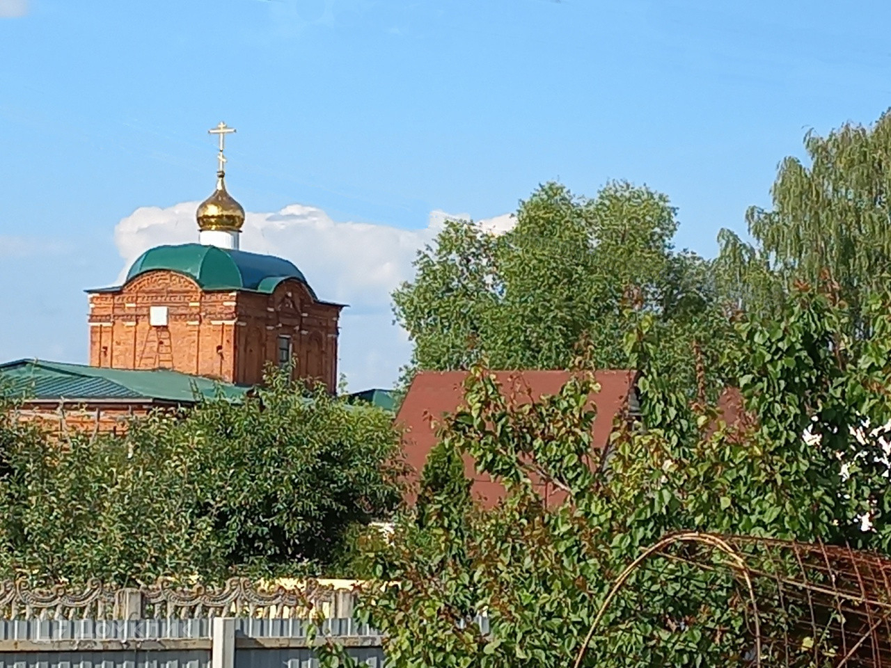 Сам дом с участком расположены в центральной части села, на боковой тупиковой улице. С участка и из дома видна Богородицкая церковь, она буквально в ста метрах от дома. Чуть ближе — два продуктовых магазина. К участку можно подъехать с двух разных сторон.