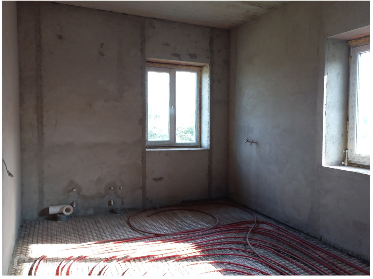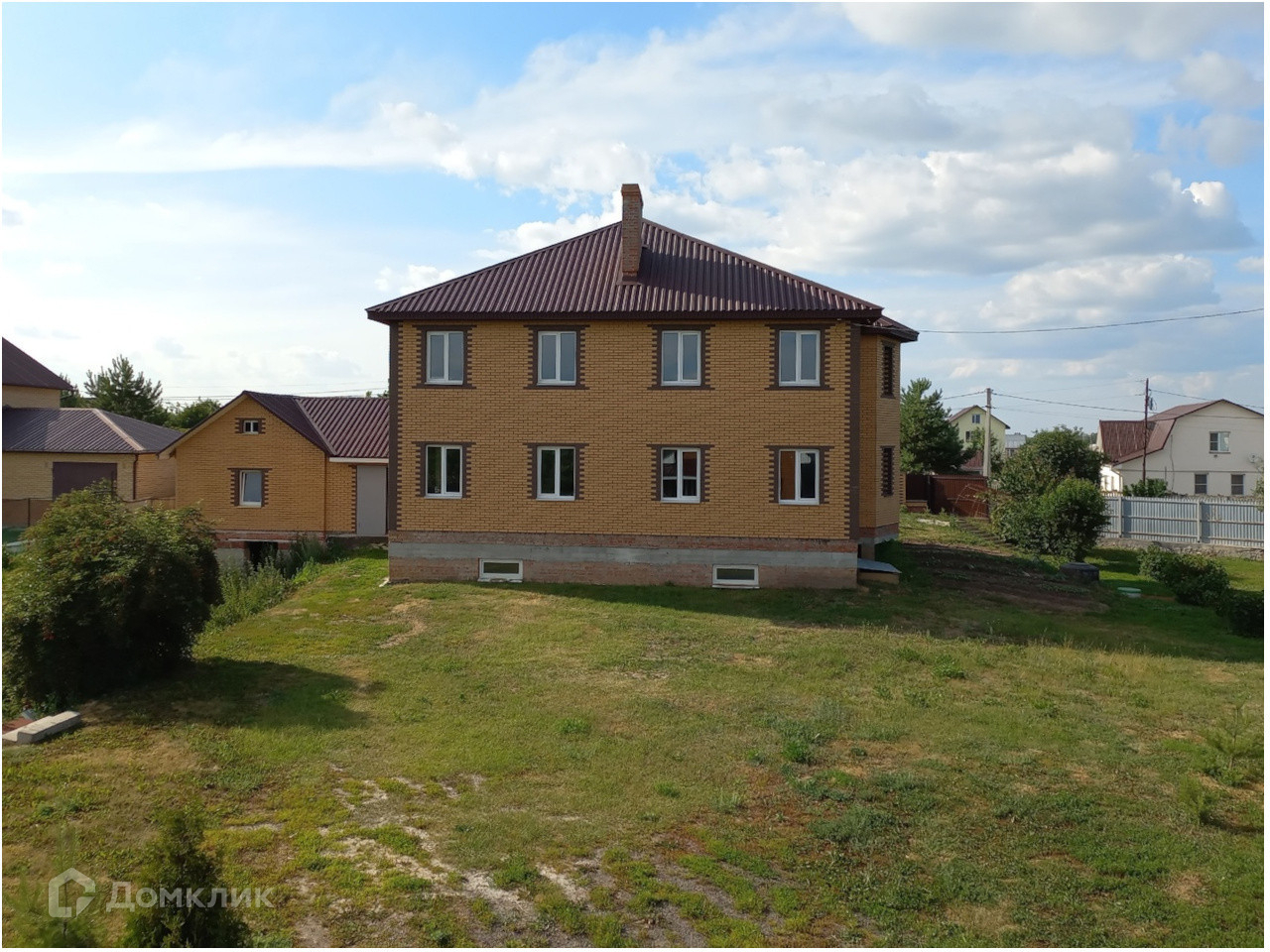 Дом в два жилых этажа и большой цокольный, имеет 6 жилых комнат, 2 просторных холла. Построен в передней части участка. Окна в доме пластиковые, расположены на все стороны света. По дому разведена электрическая проводка, подведены газ и вода.