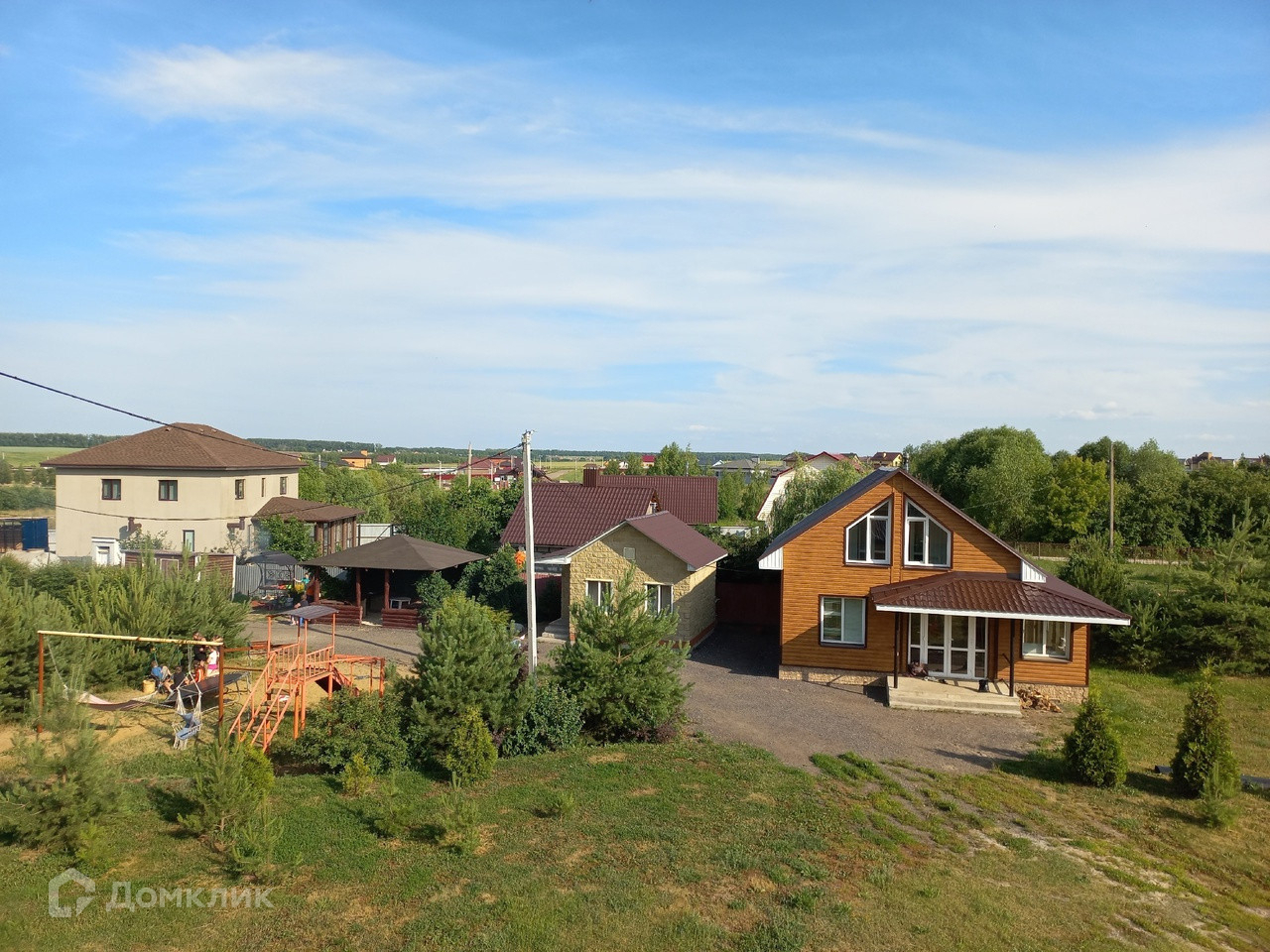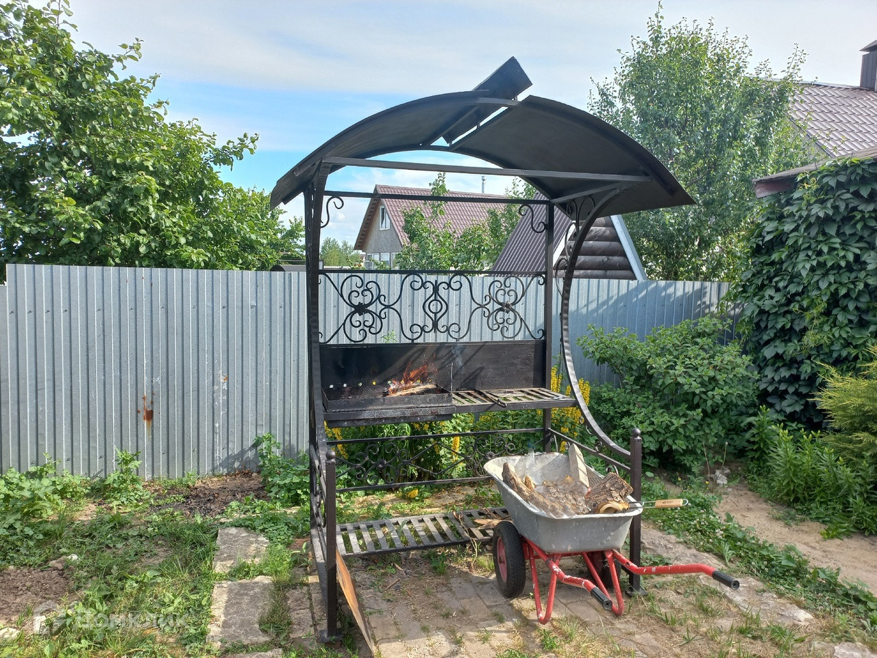 Здесь установлена полноценная детская площадка: песочница, горка, качели. Рядом — открытая деревянная беседка с мангалом и подведенной водой в зоне приготовления пищи. Есть летний домик с одной комнатой и вместительным погребом. В домике проведено электричество и телевидение.