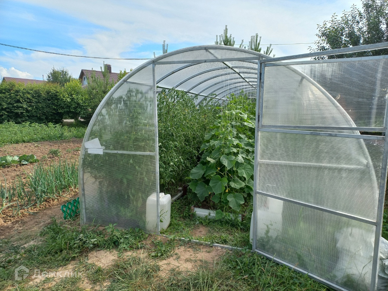 Сам участок разбит на несколько зон. Установлен металлический забор по периметру участка. Есть обрабатываемый огород и теплица, фруктовый сад: вишня, черешня, абрикосы, груша, яблони, смородина. Есть свободная территория, засеянная газонной травой. Есть возможность организовать пруд, в котором Вы будете разводить карпов. По всей территории участка разведена система полива, организована система водоотведения.