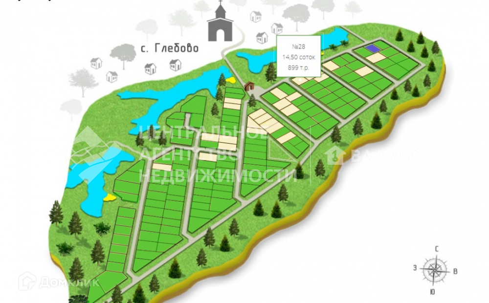 Участок под ИЖС, 14.5 сот. на продажу в селе Глебово