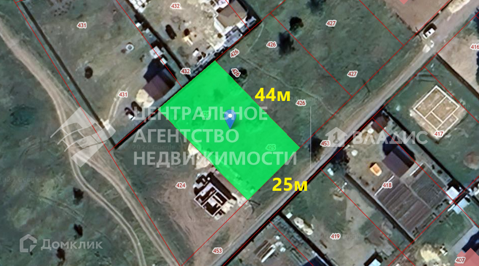 Участок правильной формы, ровный, 25х44 м. Находится на короткой улице рядом с водоёмом (вторая линия).