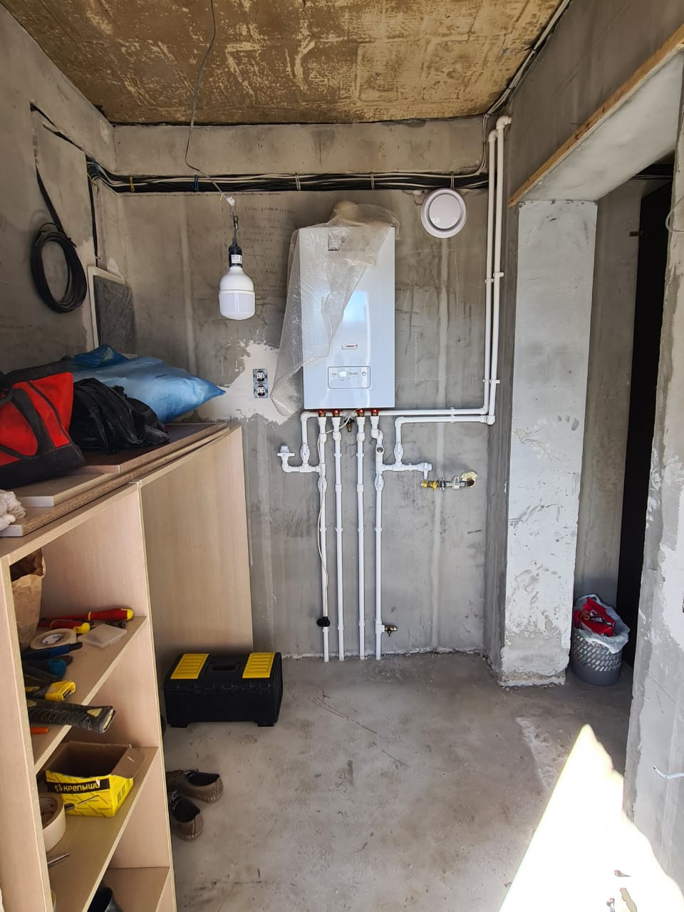 - центральный газ заведен в дом (пуск этой осенью). Установлен газовый котел и разведены трубы отопления.