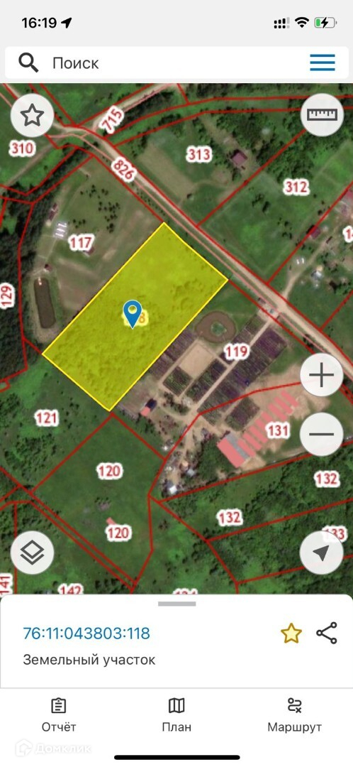 1.6 гектаров земли , участок ровный, сухой, квадратной формы , участок с трех сторон огорожен забором (рабица).Половина участка поросла молодыми лесом , очень тихое место. К участку отсыпан подъезд .