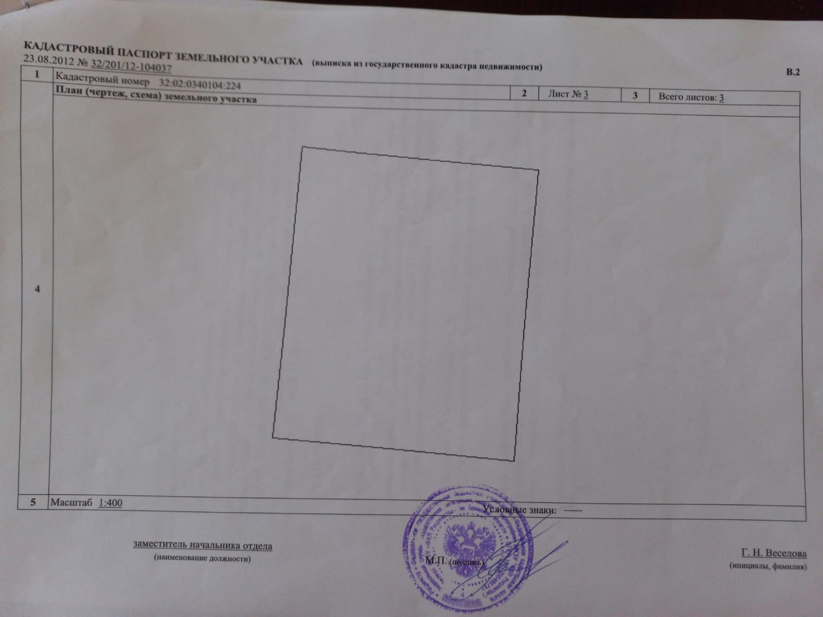 Кадастровый номер: 32:02:0340104:224