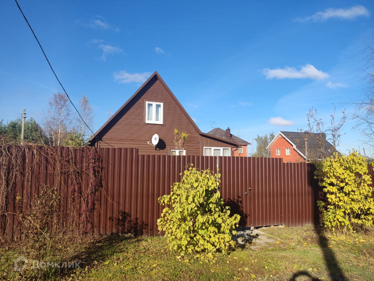 На участке теплица, летний душ, туалет, бытовка. Забор по всему периметру из металлопрофиля.