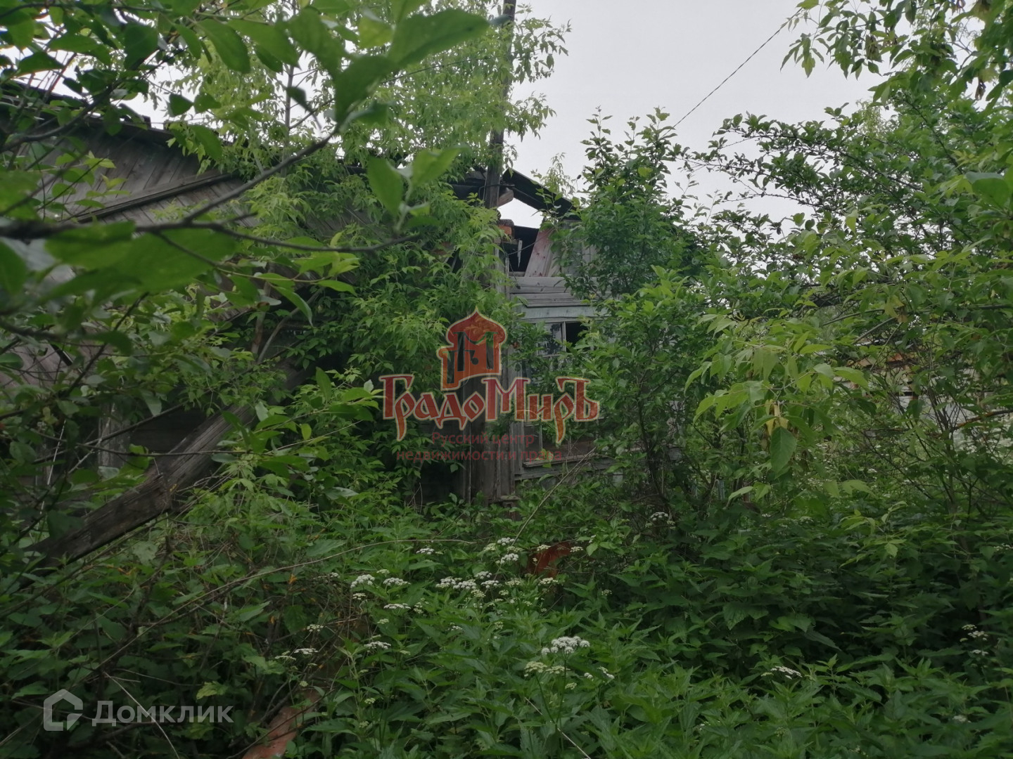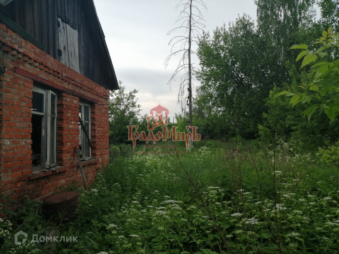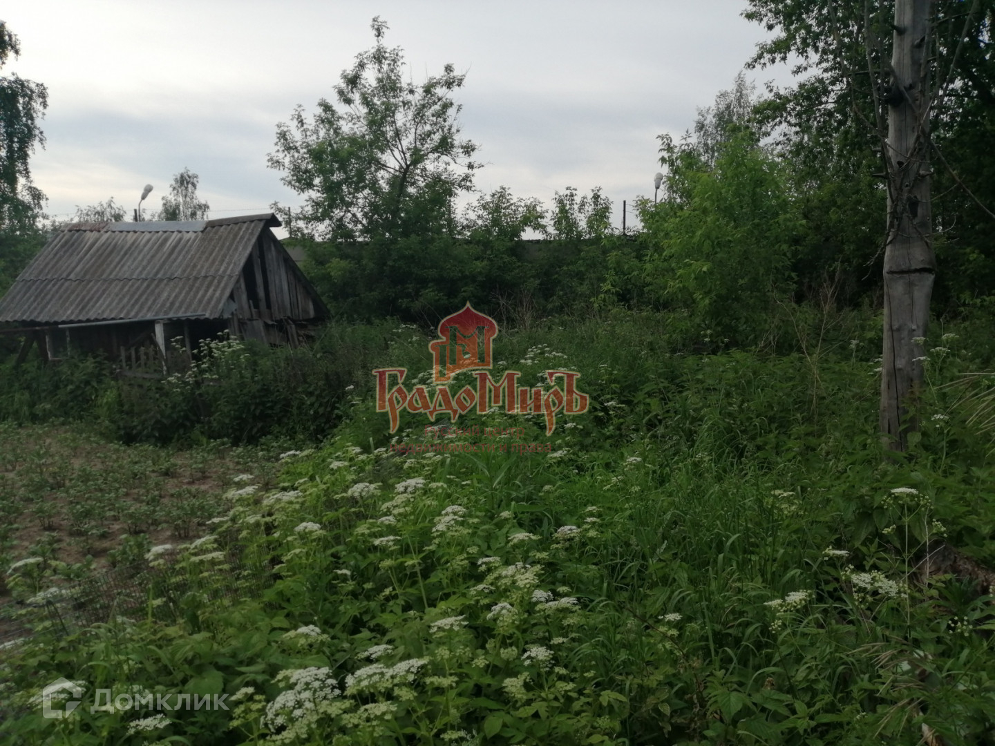 Территория ровная без уклонов, не обрабатывается, заросла. По периметру огорожена. На земле находится старый дом под снос.