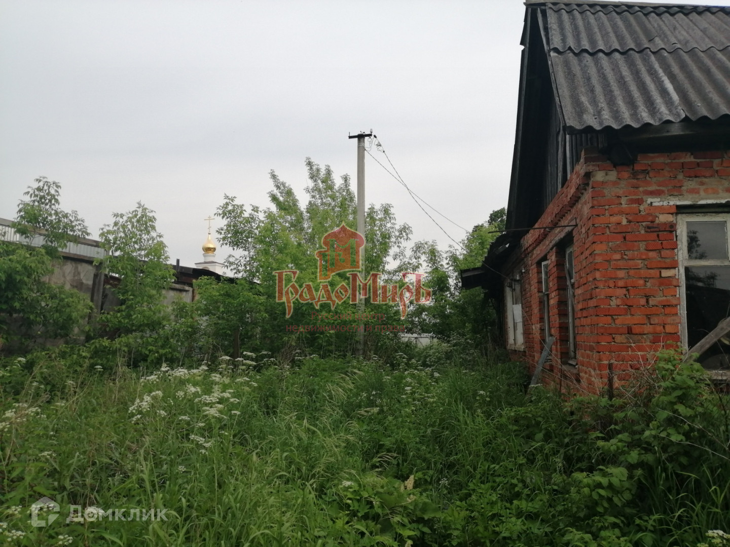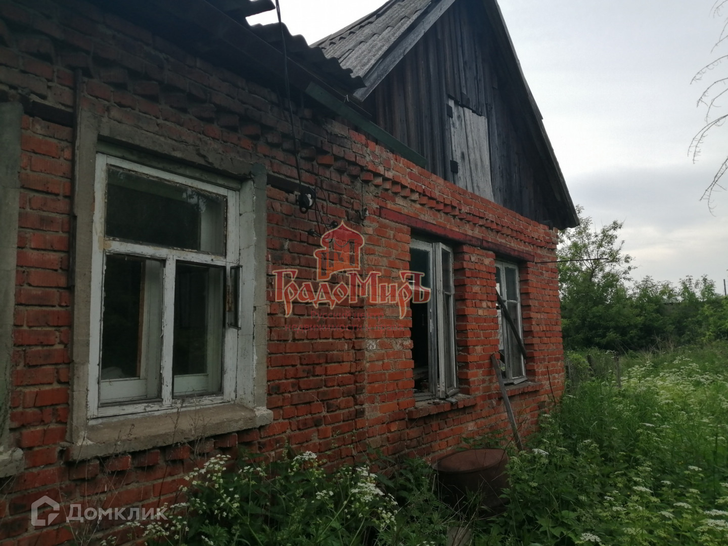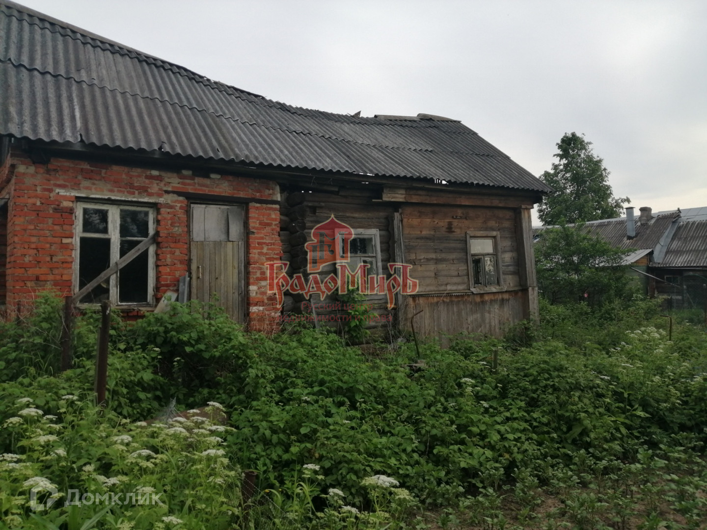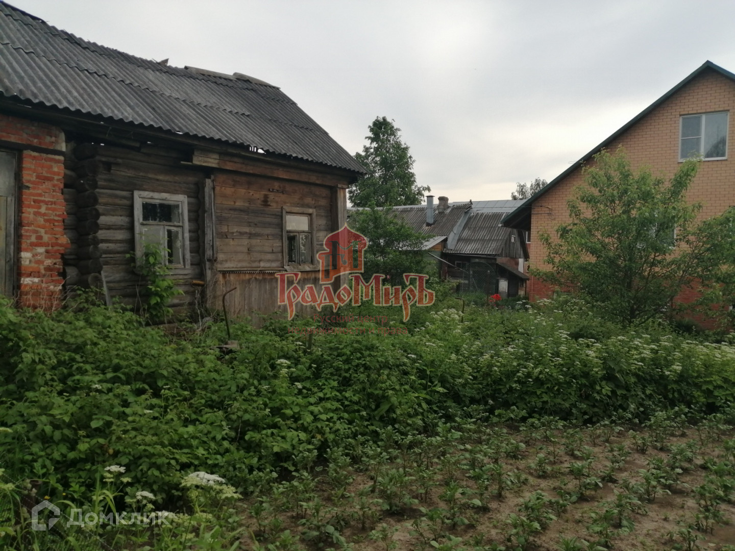 Территория ровная без уклонов, не обрабатывается, заросла. По периметру огорожена. На земле находится старый дом под снос.