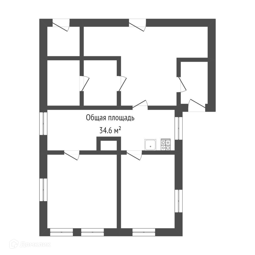 Общая площадь 34.6 м2