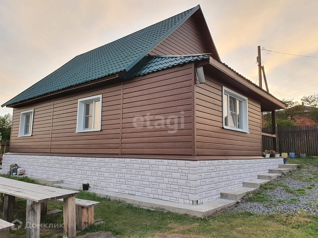 Стены из бруса 15*15, утеплен 50мм и обшит металлическим сайдингом. Фундамент утеплен 50мм и сделана отмостка. Окна пластиковые. Отличная входная дверь.