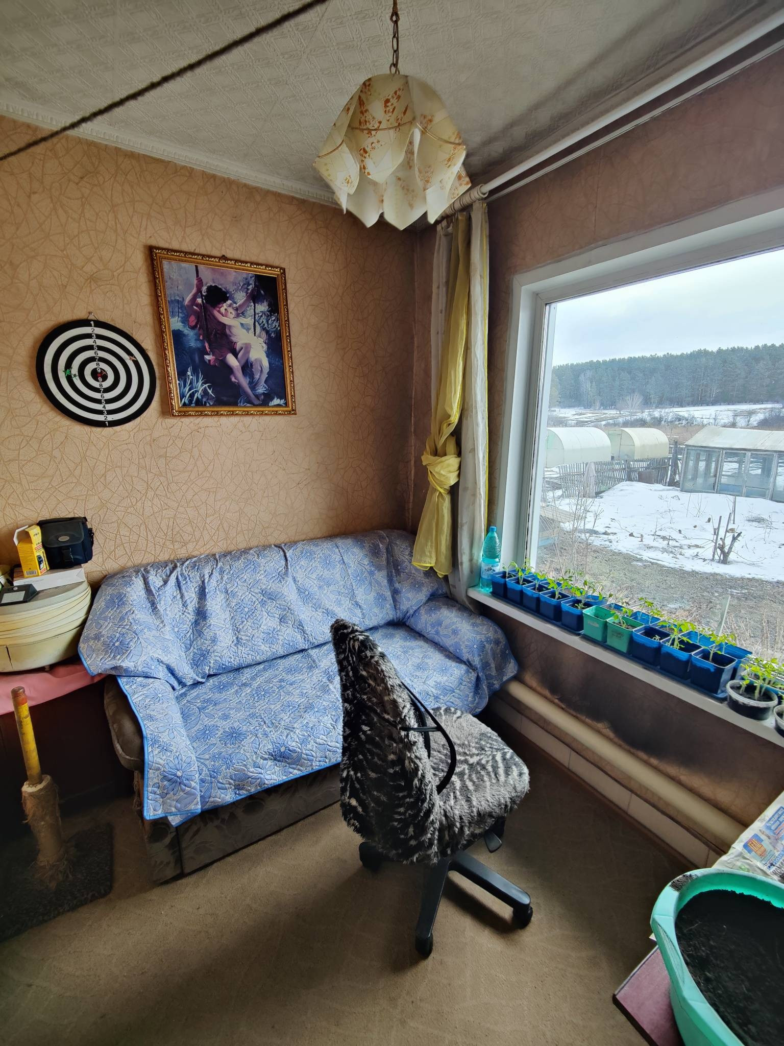 За огородом хвойный лес , утром встаёт солнце со стороны огорода, очень красивый вид !